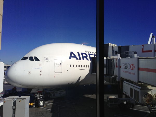 Toujours beau à voir pour les passionnés, l'Airbus A380 qui nous emmène à LA