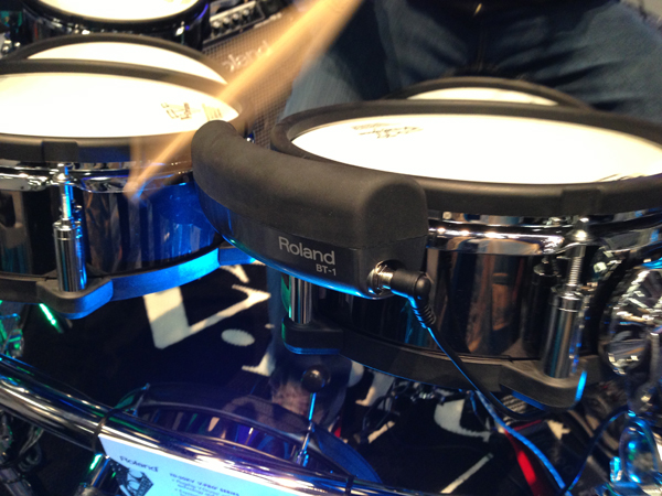 Des nouveaux pads Roland BT1 ergonomiques qui se placent n'importe où pour déclencher cloche, timbalès, crashers etc. Très pratique sur batterie électronique ou acoustique