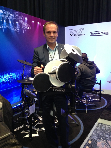 Jeroen Ravesloot Directeur marketing de chez Roland Benelux et France qui nous montre la compacité du nouveau kit TD4-KP une fois plié.
