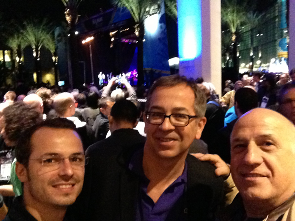 Thierry Lalite, François Roy et Philippe Lalite à la sortie du salon avec en fond de scène "Tower of Power" pour nous distraire un peu!