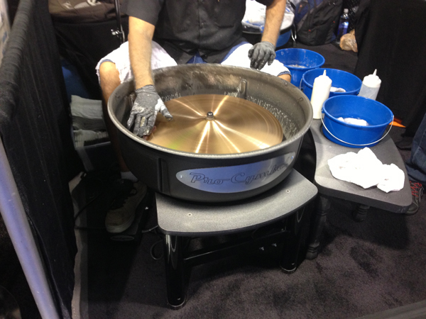 Vous savez qu'il est préférable de ne pas nettoyer vos cymbales sous peine d'en altérer le son. Mais si vous insistez, sachez qu'il existe une machine façon barbe à papa nettoyeuse polisheuse au prix modique de 2400 dollars!