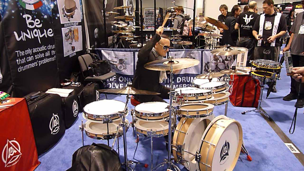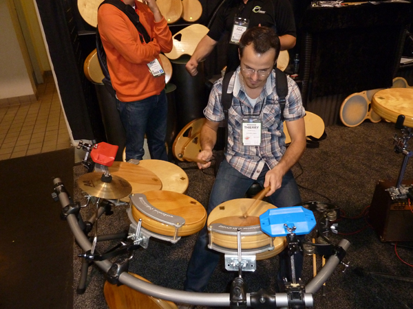 Batterie en bois peu sonore. Les inventeurs fous du Namm comme on les aime !