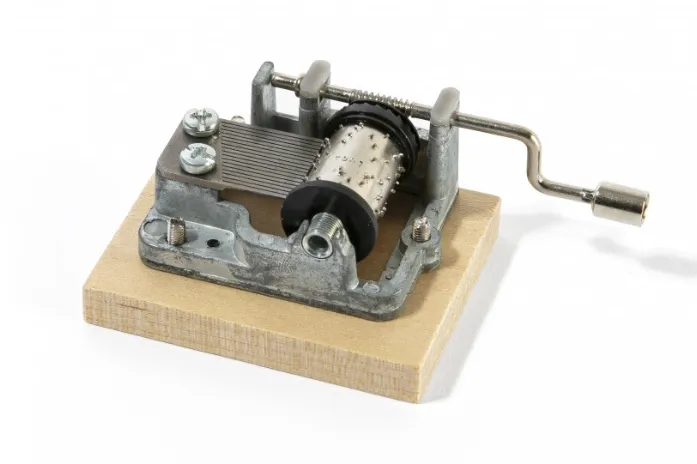La serinette est une petite boîte à musique qui est fixée sur un socle en bois et qui permet d'avoir un son de qualité lorsque l'on tourne la manivelle pour jouer le titre MON BEAU SAPIN.
