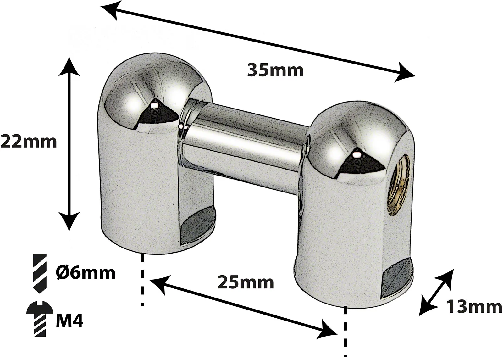 Entraxe (Centre à Centre): 25mm