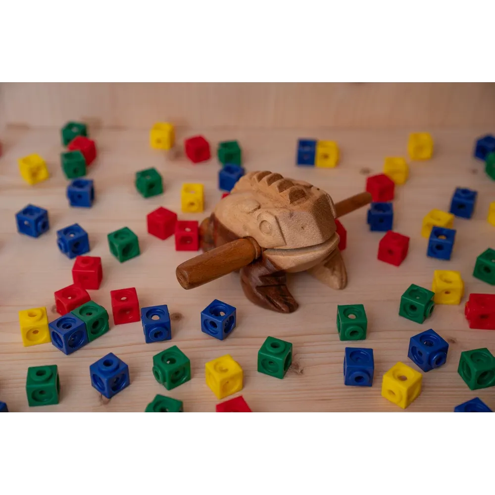 La Grenouille Güiro NINO® Percussion est creuse à l'intérieur avec un dos strié qui crée un son "ribbit" lorsque vous faites glisser la baguette dessus. L'aspect de l'instrument le rend amusant à jouer pour les enfants. Il produit un son chaud et doux qui s'harmonise avec d'autres instruments dans une salle de classe. Les enfants peuvent également en jouer à la maison. Comprend un grattoir en bois.