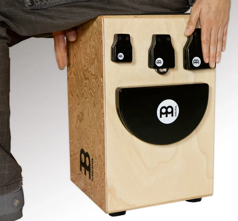 Castagnette cajon, hévéa, ouverture à ressort, adhésif multi surfaces, grand modèle, noir mat.