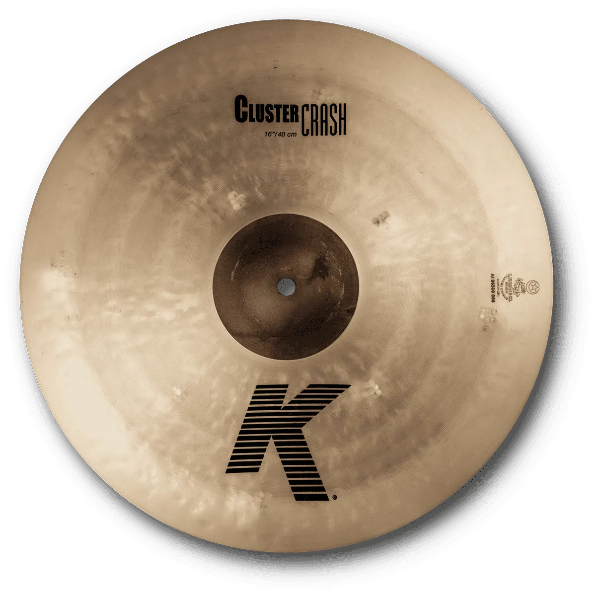 La K Cluster Crashes est extra fine avec une cloche non ciselée et dispose de la technique de martelage traditionnelle du style K avec des marques de marteaux supplémentaires qui créent un son plus sombre, plus trash avec une attaque rapide et une grande réponse.