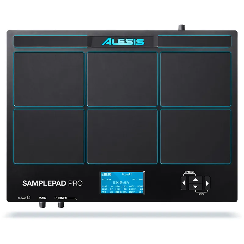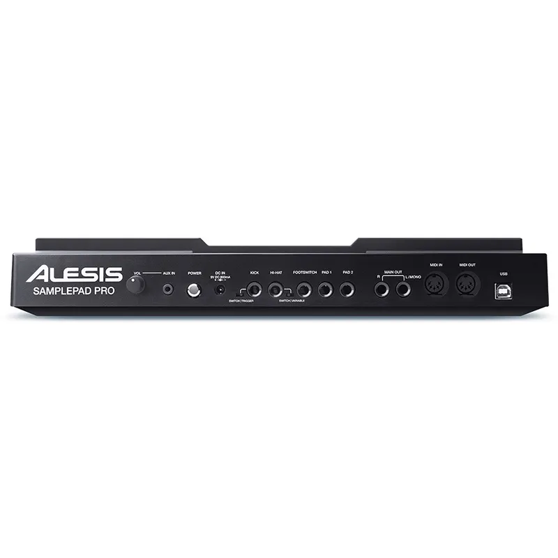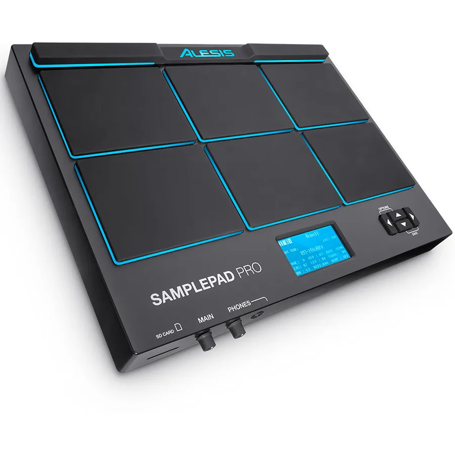 2 ans après la sortie du Sample Pad, Alesis lance le SAMPLEPAD PRO, une version « bodybuildée » du premier pad. Avec 10 kits pré-programmés et 200 sonorités incluses, le SAMPLE PAD PRO réunit une multitude d’instruments et de styles musicaux différents, et offre en plus un lecteur de carte SD qui vous permettra de jouer vos propres samples pour laisser libre cours à votre imagination. Ajoutez deux pédales (type sustain) aux entrées grosse caisse et hi-hat, et transformez le SAMPLE PAD PRO en batterie. Les possibilités sont infinies et le SAMPLE PAD PRO deviendra vite un allié de choix pour composer ou compléter votre batterie.