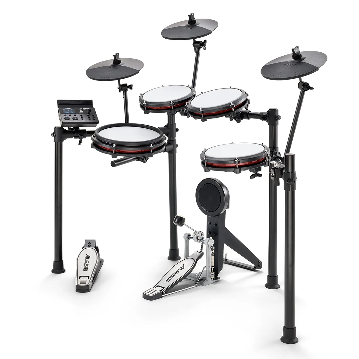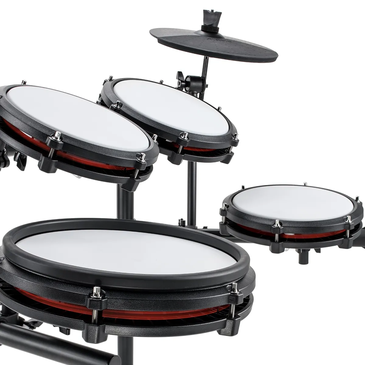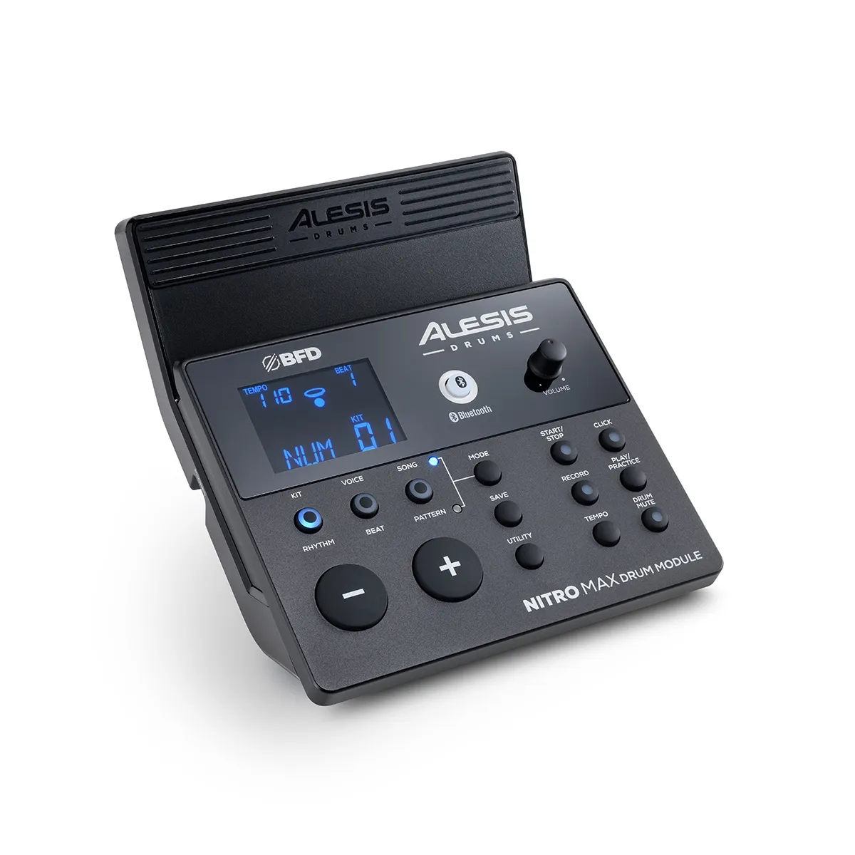 Sensation de maillage de première qualité, performance naturelle inégaléeLe Nitro Max d'Alesis est un kit de batterie électronique doté d'une technologie de peau en maille très réactive. Les peaux de batterie à mailles d'Alesis ouvrent la voie à des performances de batterie électronique naturelles et réactives qui permettent un jeu précis tout en conservant un environnement silencieux, adapté à un usage domestique. Il comprend une caisse claire de 10" à deux zones pour un jeu dynamique, 3 toms de 8", 3 cymbales de 10", une grosse caisse, ainsi que des pédales de grosse caisse et de charleston, plus le câblage nécessaire, un rack solide, des baguettes et une clé d’accordage de batterie.Nitro Max comprend une collection étonnante de sons de batterie et de percussion réalistes. Le module de batterie contient un nombre impressionnant de 32 kits de batterie de première qualité provenant de BFD, la principale bibliothèque d'échantillons de batterie pour Mac ou PC. Le module Nitro Max comprend des présélections de kits de batterie classiques et modernes pour une palette sonore polyvalente adaptée à tout style ou genre musical. De plus, le kit Nitro Max est prêt à évoluer en fonction des besoins des batteurs grâce aux sorties extensibles intégrées pour le kit d'extension Nitro Max optionnel (non inclus).La source d'un son sérieuxLe module de batterie Nitro Max est au centre non seulement d'instruments de batterie et de percussion aux sons réalistes, mais aussi d'une technologie de pointe pour fournir les outils nécessaires à la pratique et à la performance de la batterie moderne. Avec plus de 400 sons de qualité supérieure issus de la bibliothèque de batteries BFD, le module Nitro Max met des dizaines d'instruments de haute qualité à portée de main, d'une simple pression sur un bouton. Les utilisateurs peuvent créer et stocker jusqu'à 16 préréglages personnalisés pour les retrouver rapidement.Les utilisateurs peuvent créer et stocker jusqu'à 16 préréglages personnalisés pour les retrouver rapidement. Ils peuvent écouter des morceaux ou leurs enregistrements préférés grâce à l'intégration Bluetooth, qui leur permet de diffuser de l'audio à partir de n'importe quel appareil intelligent ou tablette compatible Bluetooth. Le Nitro Max dispose même d'un support élégant conçu pour accueillir la plupart des téléphones et tablettes en orientation paysage, ce qui est parfait pour visionner des leçons ou des vidéos didactiques pendant que l'utilisateur s'entraîne.Une pratique parfaite, une performance parfaiteLe module Nitro Max propose également des fonctions d'entraînement pour aider les batteurs à progresser dans leur jeu. La Nitro Max propose 60 pistes d'accompagnement qui leur permettent de s'entraîner et de créer de véritables grooves. Quand il est temps de passer à la pratique et à la préparation de base, le Nitro Max propose un métronome, un séquenceur et un enregistreur de performance pour aider les batteurs à rester bloqués pendant qu'ils travaillent sur des motifs et des combinaisons délicates.Apprenez la batterie avec Drumeo et MelodicsPlongez dans un abonnement de 90 jours à Drumeo, la plus grande communauté de batteurs au monde. Drumeo propose une vaste collection de cours, de contenus d'artistes et bien plus encore pour aider les batteurs à atteindre leurs objectifs. Drumeo propose du contenu pour les batteurs de tous niveaux afin qu'ils apprennent et développent leurs compétences grâce aux meilleurs batteurs, cliniciens et musiciens de session.