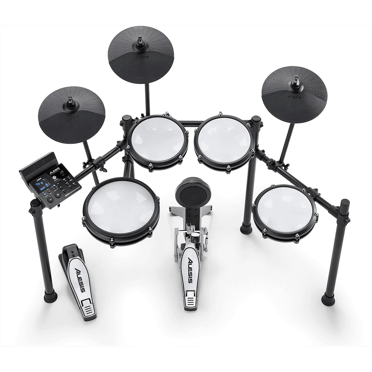 Le Nitro Max d'Alesis est un kit de batterie électronique doté d'une technologie de peau en maille très réactive. Les peaux de batterie à mailles d'Alesis ouvrent la voie à des performances de batterie électronique naturelles et réactives qui permettent un jeu précis tout en conservant un environnement silencieux, adapté à un usage domestique. Il comprend une caisse claire de 10" à deux zones pour un jeu dynamique, 3 toms de 8", 3 cymbales de 10", une grosse caisse, ainsi que des pédales de grosse caisse et de charleston, plus le câblage nécessaire, un rack solide, des baguettes et une clé d’accordage de batterie.