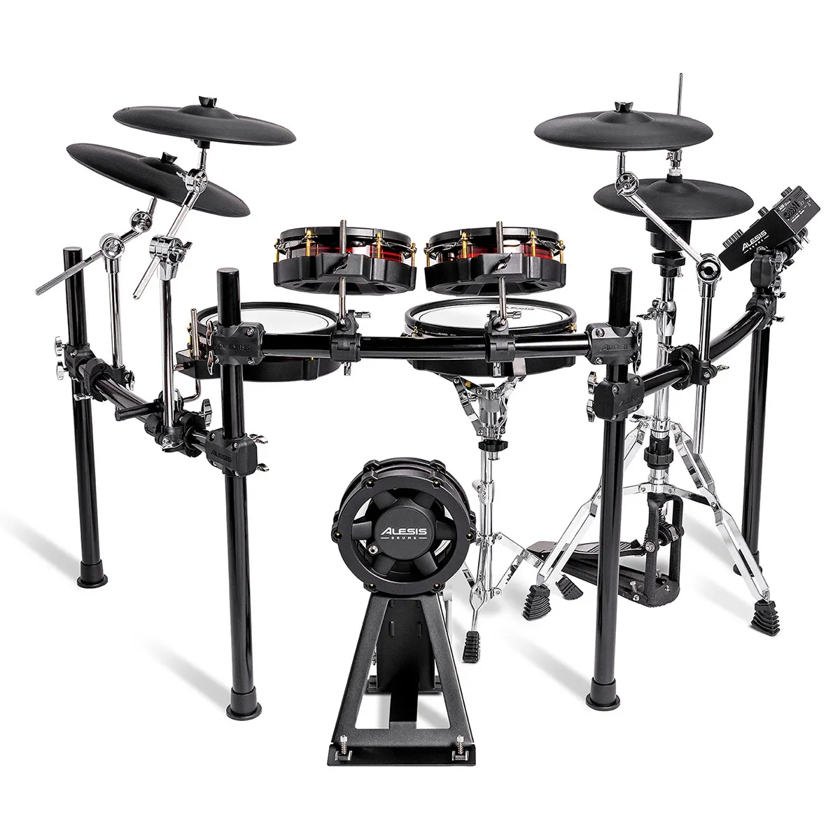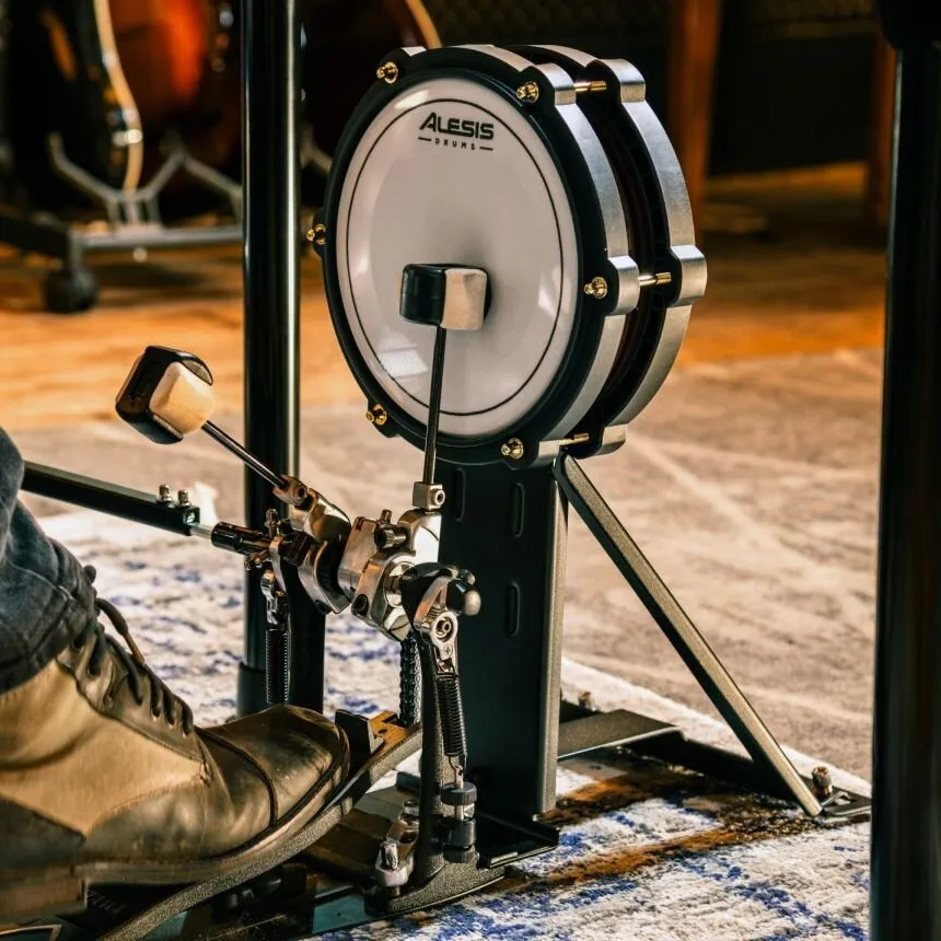 Une caisse claire à double zone avec des sons indépendants déclenchés sur la peau (rim click et rim shot), accompagnée de toms de 8”/8”/10” double zone et d’un pad de grosse caisse de 8” offrent une surface de jeu confortable, compatible avec toutes les variétés de pédales simples et doubles. La tension des peaux maillées peut être ajustée selon votre préférence pour un rebond et une expressivité optimale. Les « hotspots (points chauds) » indésirables sur les peaux sont éliminés grâce à notre conception brevetée de capteur anti-hotspots.