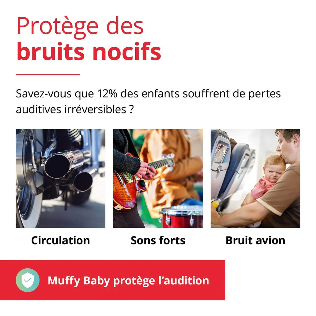 Le monde devient de plus en plus bruyant. Les bruits forts peuvent s’avérer dangereux pour les jeunes enfants. Dans les premières années, leur ouïe est encore en développement et extrêmement vulnérable. L'Alpine Muffy Baby limite l'exposition aux bruits nuisibles lors des premières années de la vie.