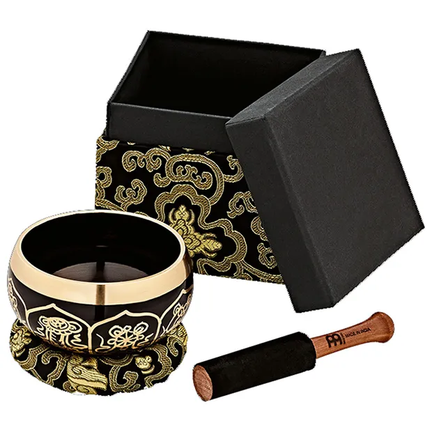 Bol tibétain ORNEMENTAL, livré avec housse et anneau de feutre (support), alliage bronze spécial, fabrication artisanale en Inde.