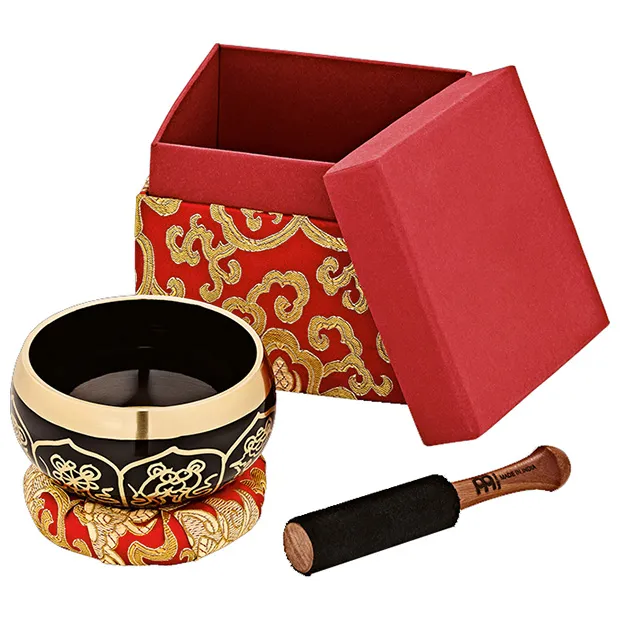 Bol tibétain ORNEMENTAL, livré avec housse et anneau de feutre (support), alliage bronze spécial, fabrication artisanale en Inde.