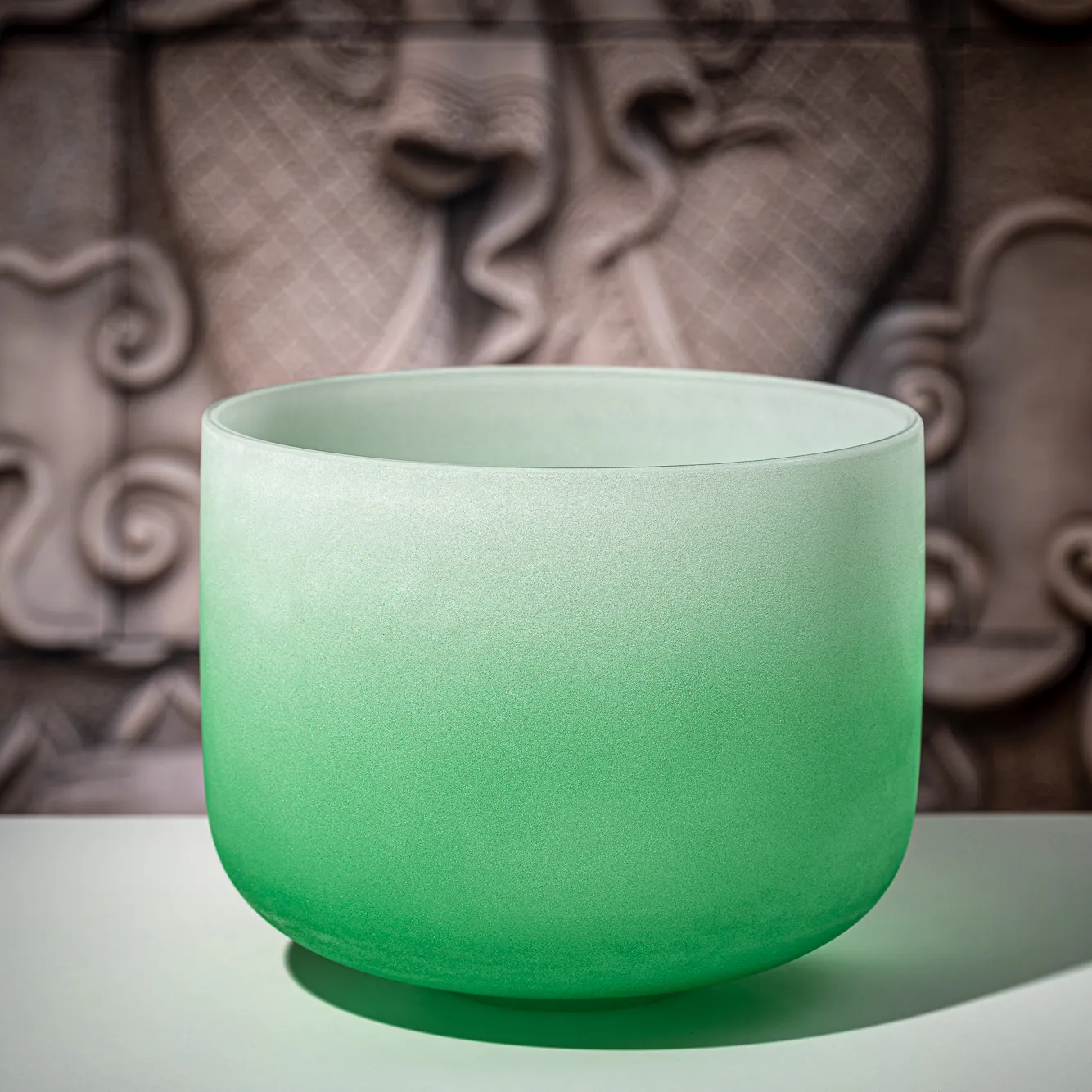 Bol chantant en cristal, couleur givrée, 11"/28 cm, Note F4, Heart Chakra (CSBC11F)