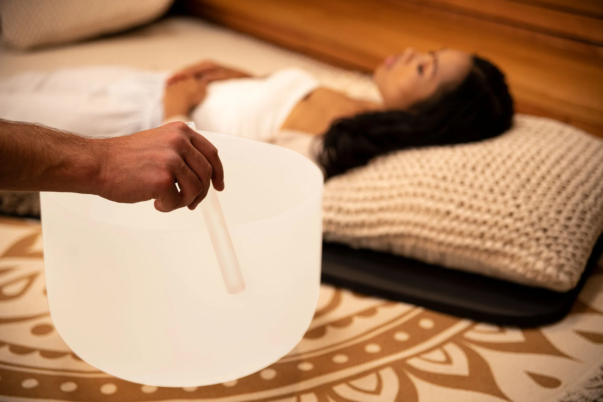 Les bols chantants Sonic Energy Crystal de Meinl, fabriqués en quartz de haute pureté et recouverts de givre blanc, créent une aura très agréable grâce à leur son et à leur design. Leur sonorité durable et sphérique se propage lorsque le bol chantant est tapoté ou frotté doucement, de sorte que l'énergie peut être ressentie dans tout l'environnement. Tous les bols chantants en cristal sont livrés avec un anneau en silicone pour éviter tout choc éventuel et assurer une résonance optimale. Vous pouvez utiliser les bols chantants en cristal à des fins très diverses : Guérison des chakras, méditation, thérapie par le son, yoga, amélioration du Fengshui de votre maison, ajustement de votre état émotionnel, ou même pour la décoration d'une pièce.