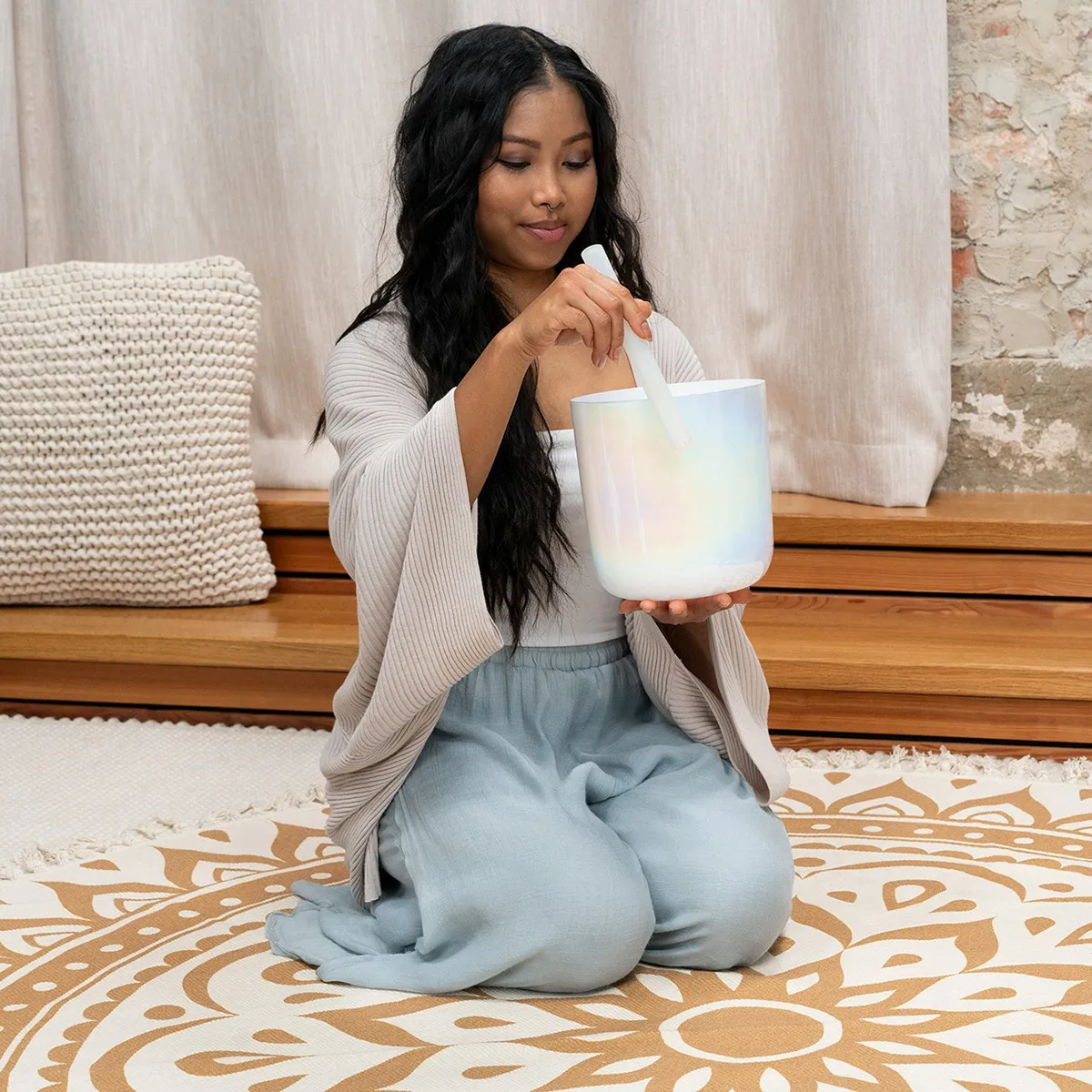 Les bols chantants Meinl Sonic Energy Essence Crystal sont fabriqués en quartz de haute pureté et créent une atmosphère agréable grâce à leur sonorité et à leur design. Leur son durable se propage vers l'extérieur en frappant ou en frottant doucement, remplissant votre environnement d'un son éthéré et d'une énergie positive apaisante. Les bols chantants Essence Crystal se caractérisent par un son clair, riche et profond qui peut plonger le joueur et les auditeurs dans un état de relaxation. Ces instruments sont légers et faciles à tenir. Grâce à leur forme artisanale et à leur accordage spécifique, les bols peuvent varier légèrement en hauteur pour être parfaitement accordés. Vous pouvez utiliser ces bols chantants en cristal à des fins diverses : Thérapie de relaxation, guérison des chakras, méditation, physiothérapie, thérapie sonore, yoga, ajustement de votre état émotionnel, ou même pour la décoration d'une pièce. Chaque bol chantant en cristal est livré avec un anneau en silicone blanc, une batte en silicone cristalline (CSBRM) et une housse de transport solide.