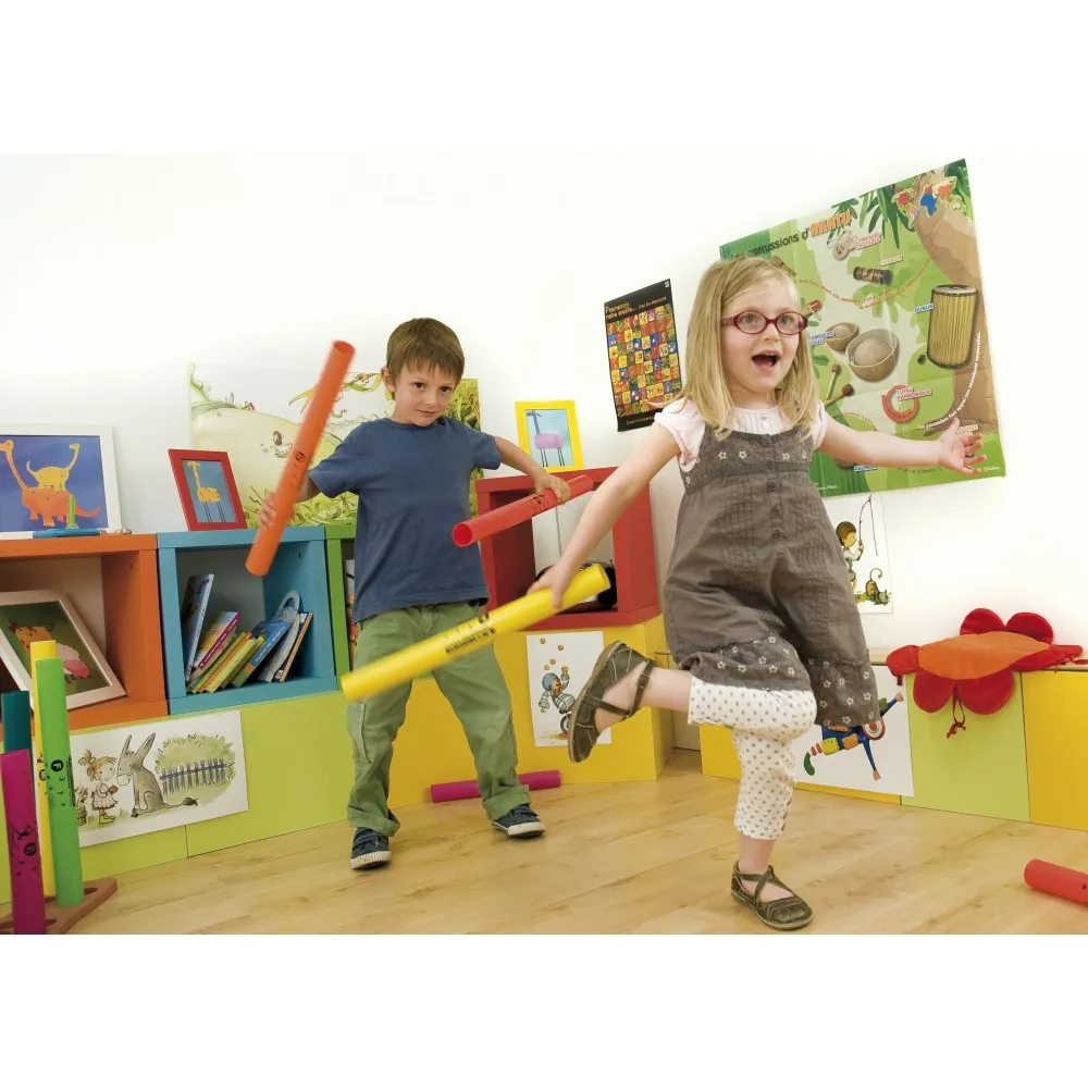 Ces instruments originaux permettent l'apprentissage très simple du rythme et des notes grâce aux couleurs. Ces boomwhackers sont fabriqués en plastique spécifique et résistant pour garantir leur longévité. L'enfant peut choisir le support sur lequel il les fait sonner (mur, par terre, corps...).