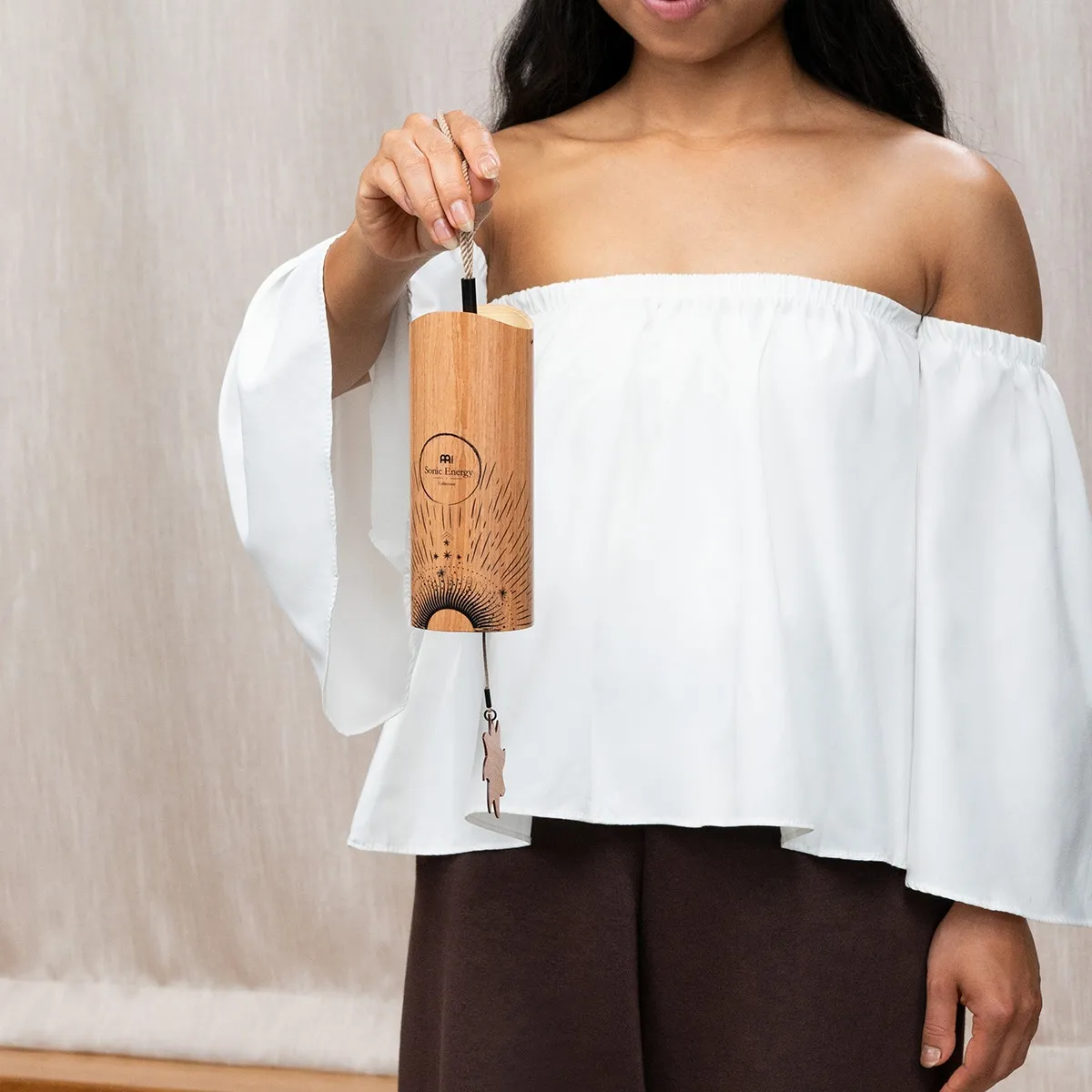 Les carillons (Chimes) cosmiques en bambou de Meinl Sonic Energy produisent des sons doux et résonnants qui emplissent votre espace d'un son serein. À utiliser pour la méditation, les bains sonores et le yoga. Ou créez un espace de détente à la maison pour la réflexion. Tenez le cordon et balancez doucement le carillon pour activer son son. À l'intérieur se trouvent un pendule et un groupe de tubes métalliques accordés à des hauteurs de son spécifiques. Modifiez facilement la tonalité en passant d'un pendule à l'autre : en acrylique (dur) ou en bois (doux). Insérez l'extrémité du fermoir du pendule dans la partie inférieure du carillon. Attachez le fermoir au crochet de la barre transversale en bois. Tirez sur le cordon tressé et prenez-le pour jouer du carillon. Disponible en quatre accords correspondant à l'heure de la journée : Aurora (matin), Sol (jour), Luna (soir) et Stella (nuit). Combinez-en deux ou plus pour créer des contrastes d'ambiance. Chaque carillon est livré avec deux pendules supplémentaires (acrylique, bois).