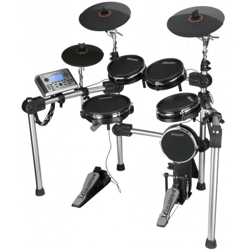 - Comporte: 1 x module Commander 501, 1 x pad de grosse caisse de 8" mesh avec pédale kick, 1 x pad de caisse claire 10" mesh double zone et Rimshot à sensibilité accrue, 3 x pad de tom 8" double zone, 1 x pad de cymbale de charleston 10" simple zone, 1 x pad de cymbale crash 12" double zone avec fonction choke, 1 x pad de cymbale ride 12" double zone avec fonction choke, 1 x pédale de contrôle de charleston, 1 x stand 4 pieds, avec matériel de montage et câbles invisibles