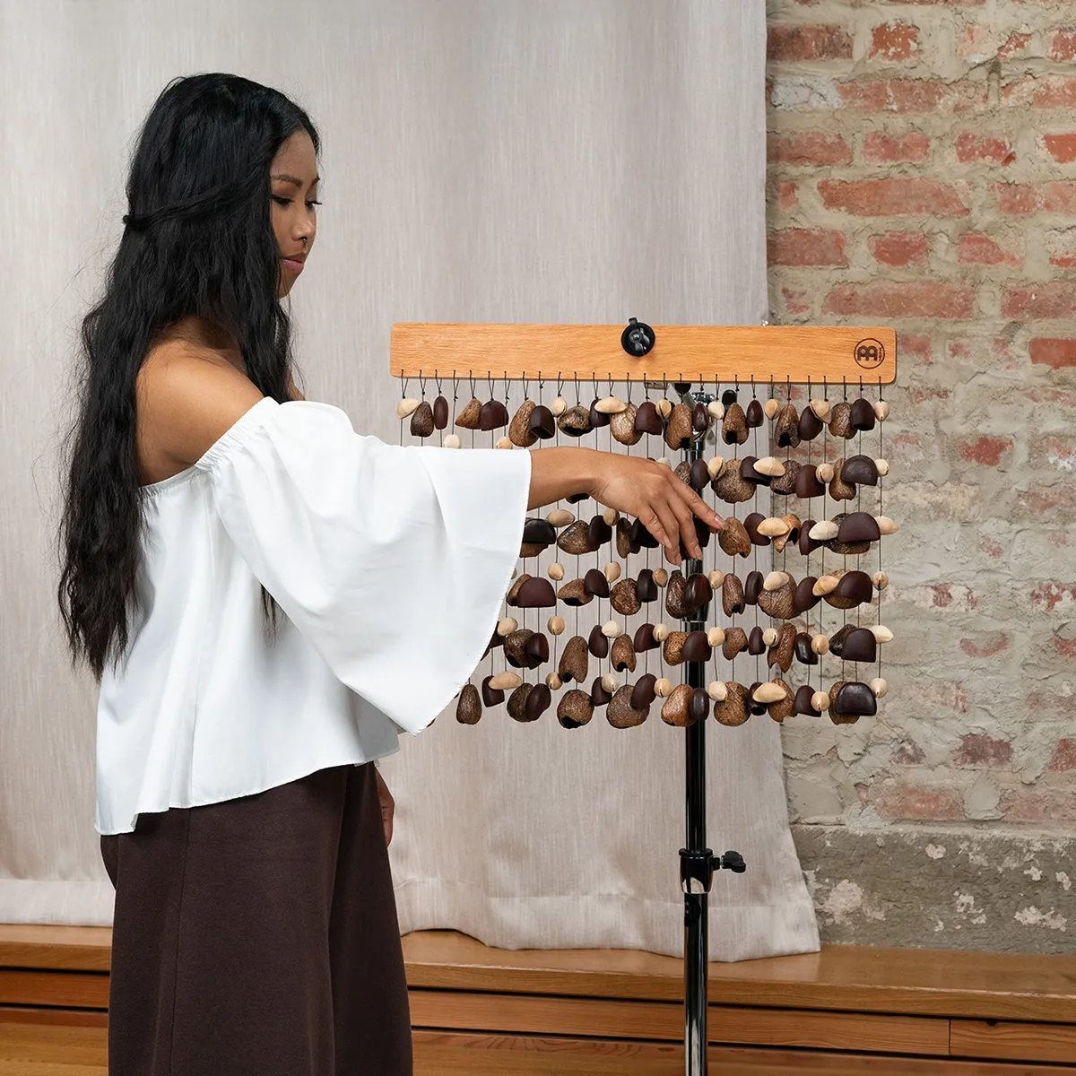 Les coques de graines Kenari, Bendo et Pangi, attachées à une solide pièce d'acajou, créent un instrument unique et polyvalent. Les Chimes Meinl Sonic Energy Mixed Seed se jouent comme des chimes classiques, mais offrent une variété de sons totalement différente. Le mélange des différentes graines crée un son très relaxant qui rappelle le bruit de l'eau qui coule.