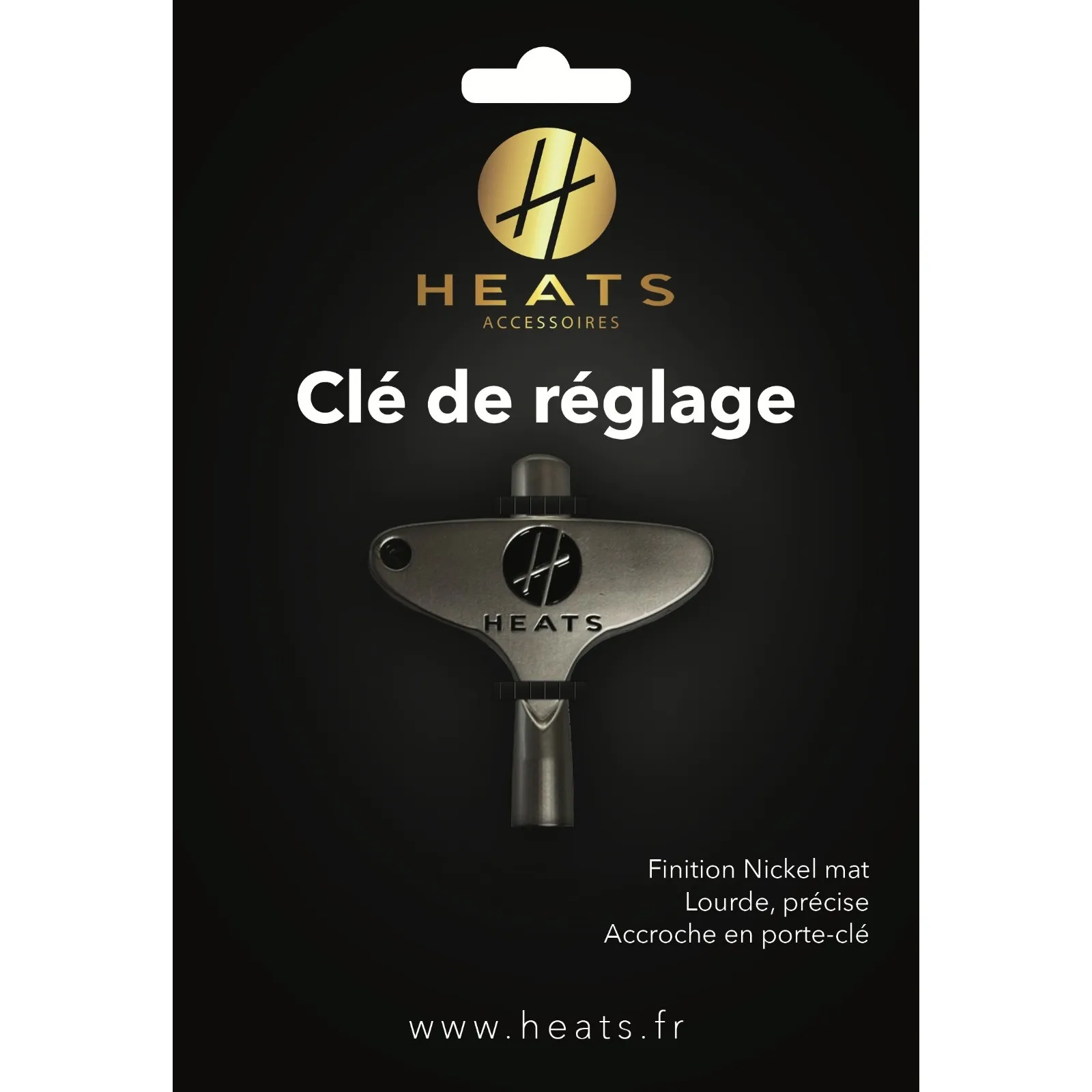 Heats vous présente la clef de réglage pour batterie. Simple, efficace et compacte, cette clef sera facile à prendre en main et pourra vous suivre partout.