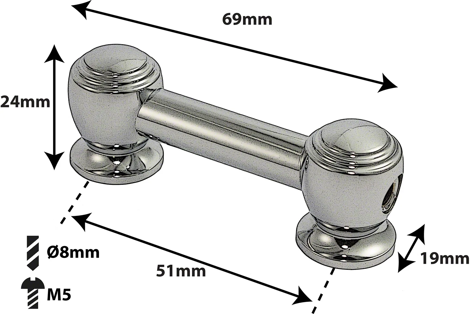• Entraxe (Centre à Centre): 51mm