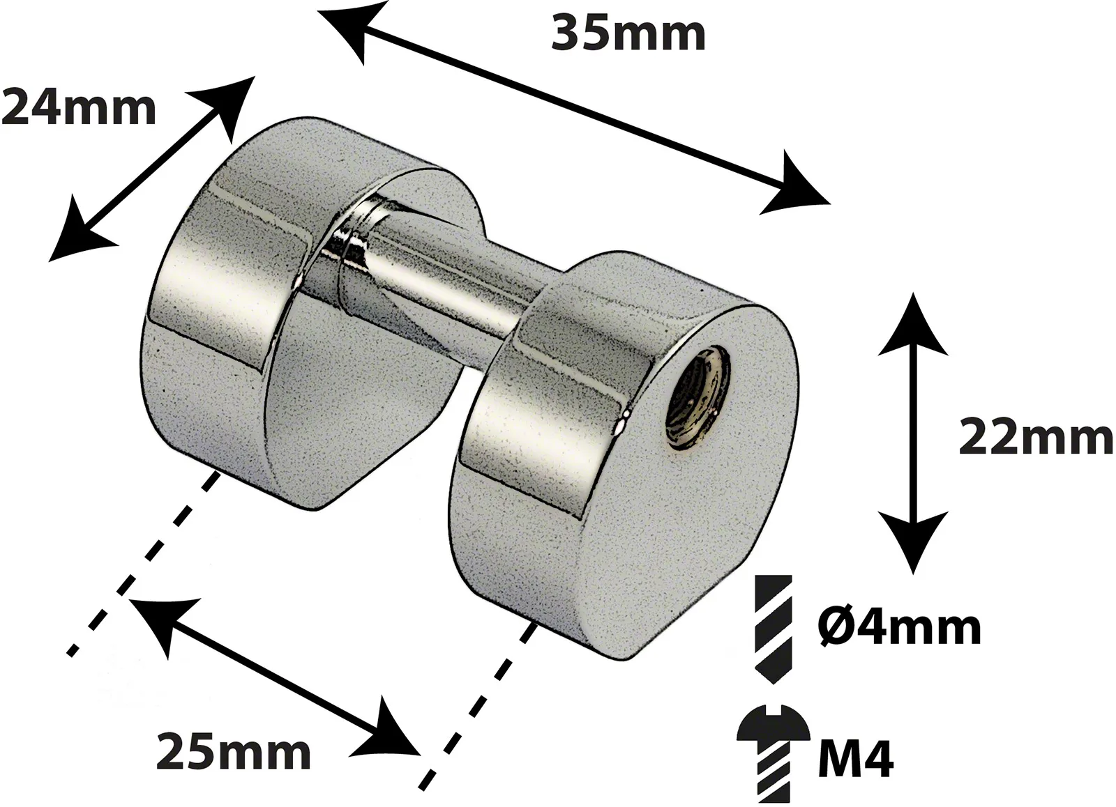 • Entraxe (Centre à Centre) : 25mm