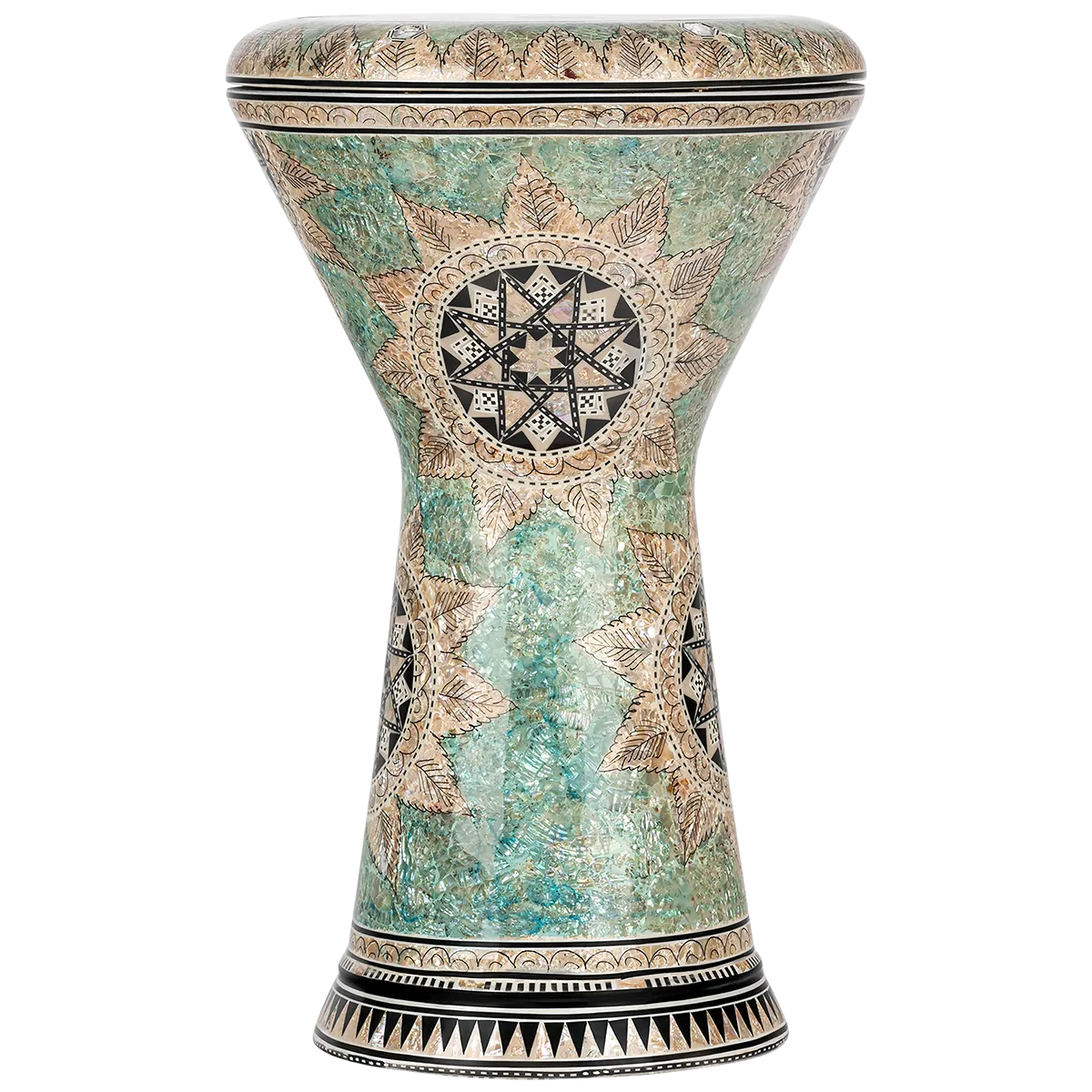 Les Darboukas Meinl Percussion Artisan Edition sont fabriquées en Egypte. La finition en mosaïque authentique est créée avec des incrustations de nacre. La darbouka elle-même est moulé en aluminium solide et possède un poids de qualité et une belle sonorité que les joueurs sérieux apprécieront.