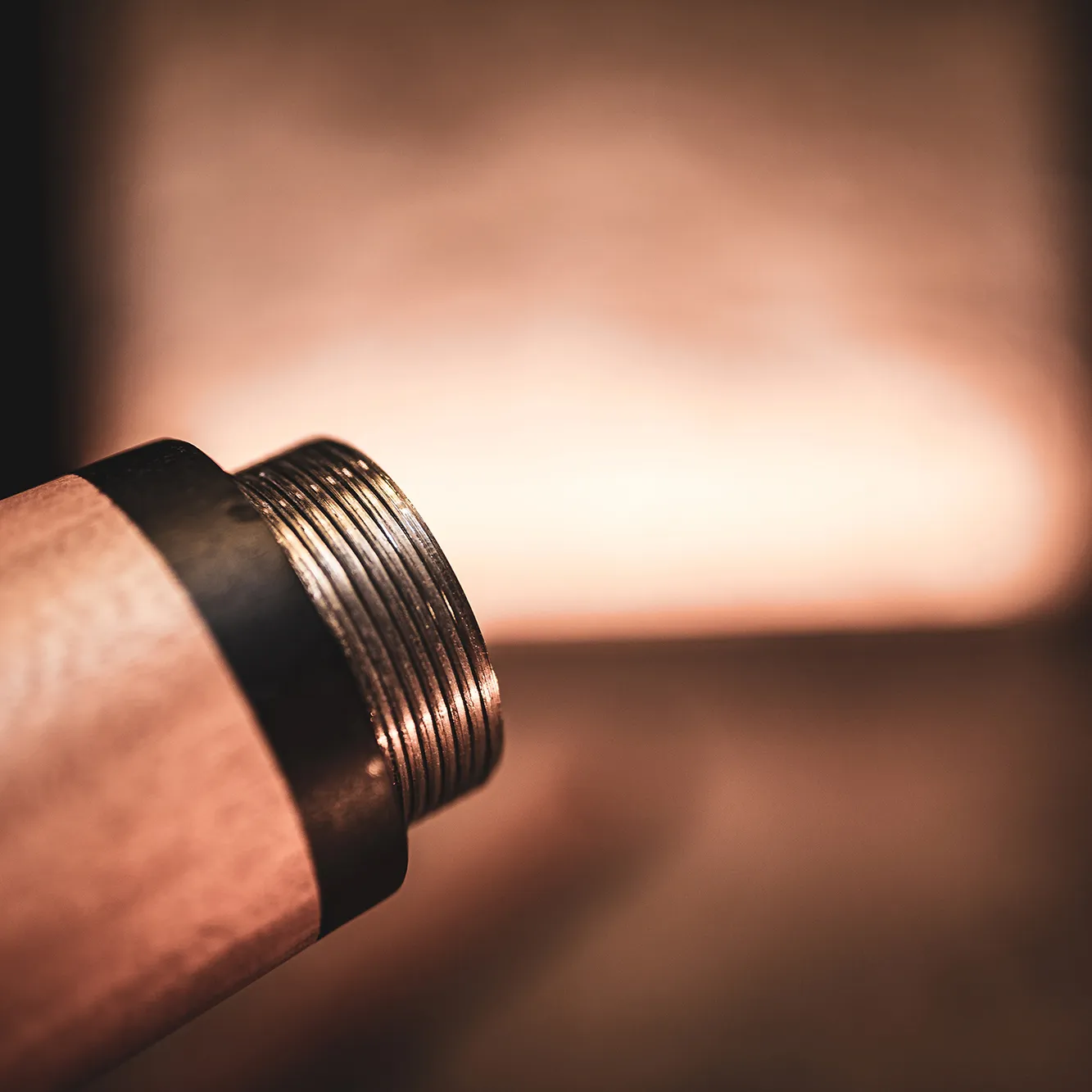 Grâce à un mécanisme à vis, vous pouvez séparer le didgeridoo en deux parties, ce qui le rend parfait pour les voyages.