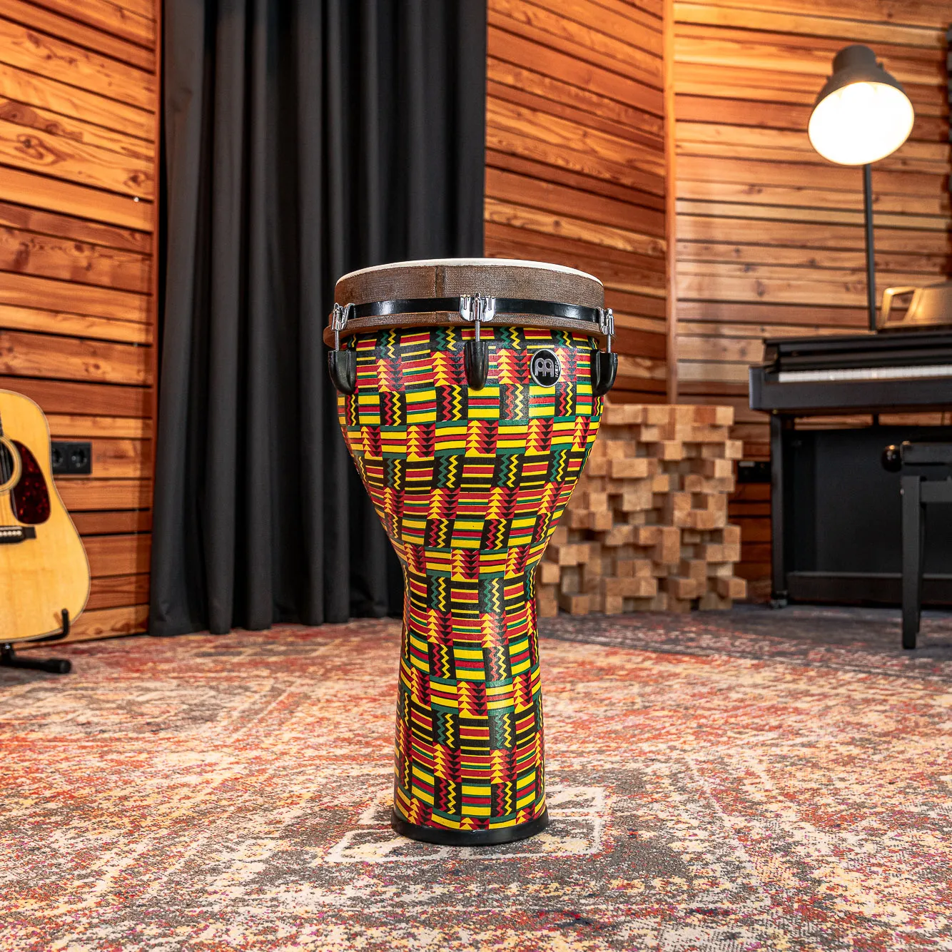 Centré sur un son grave et profond qui résonne librement, le Djembe Jumbo de Meinl permet d'obtenir de gros sons avec des matériaux résistants aux intempéries. Disponibles dans une variété de diamètres, ces djembés produisent une gamme de sonorités remarquablement large, allant des basses percutantes aux aigus tranchants.