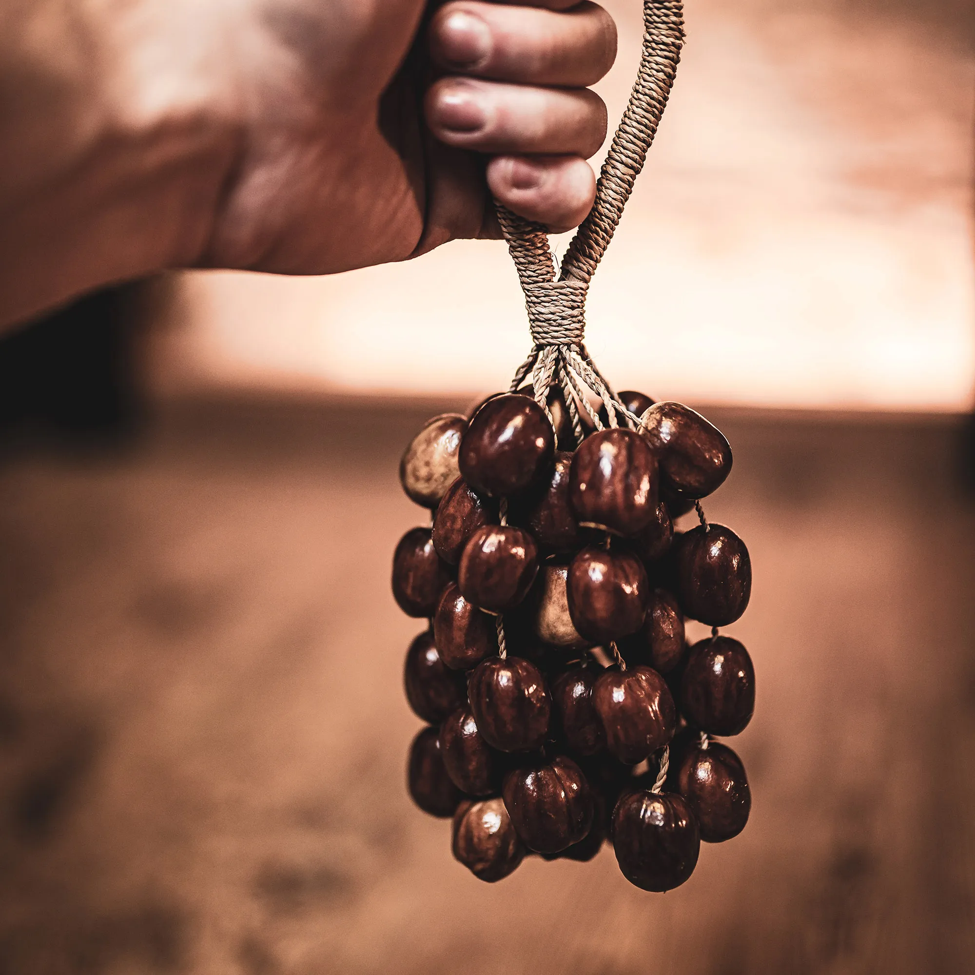 Les coquilles de graines de pala, attachées à une dragonne, créent un instrument unique et polyvalent.