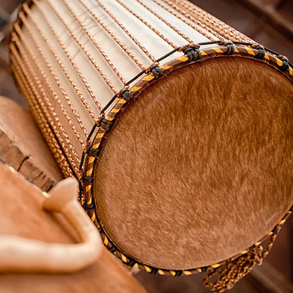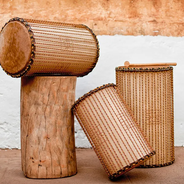 Montés de peau de vache, leur son est très puissant et profond. On les frappe au centre de la peau a l'aide d'une baguette recourbée ou droite. Possibilité de raser un petit rond au centre pour un toucher plus franc.
