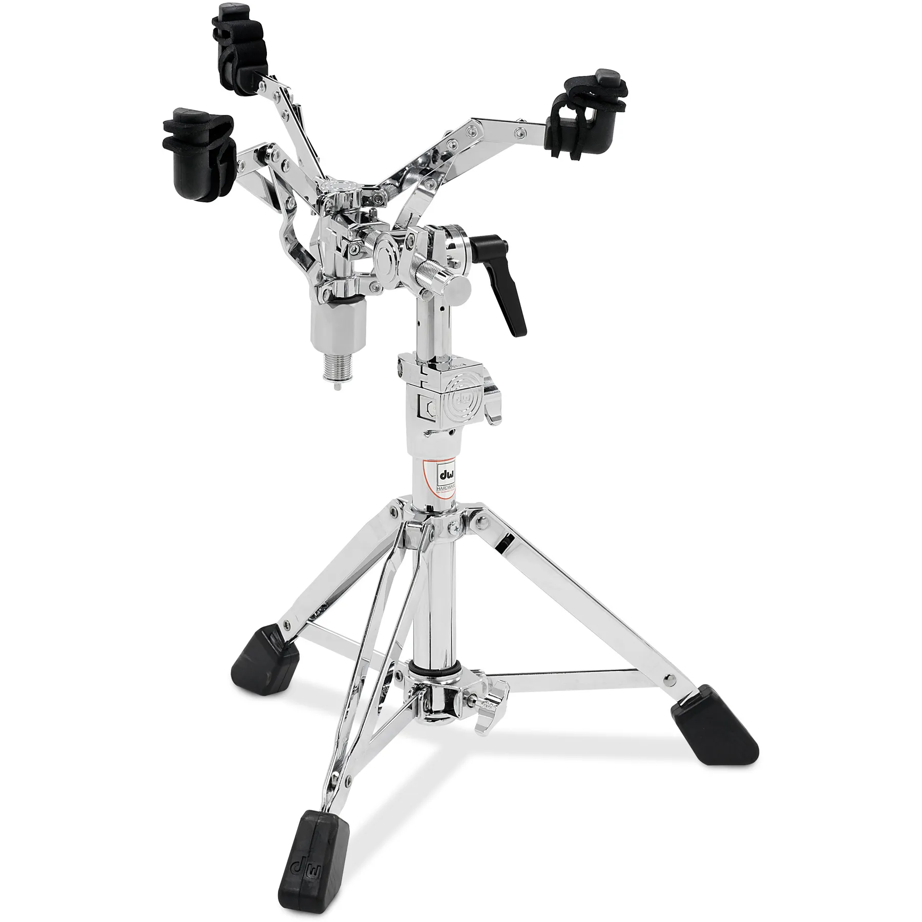Le panier est équipé d’un système de fermeture style parapluie, qui ne monte pas mais se ferme à l’horizontale quand on serre celui-ci sur des toms de petites tailles. Ceci permet au batteur de toujours accéder à une hauteur de fût qui lui convient. Son trépied a un empattement plus large au sol qu’un pied de caisse claire normal, ce qui lui confère une excellente stabilité. Il pourra soutenir des fûts de 8 à 15″.