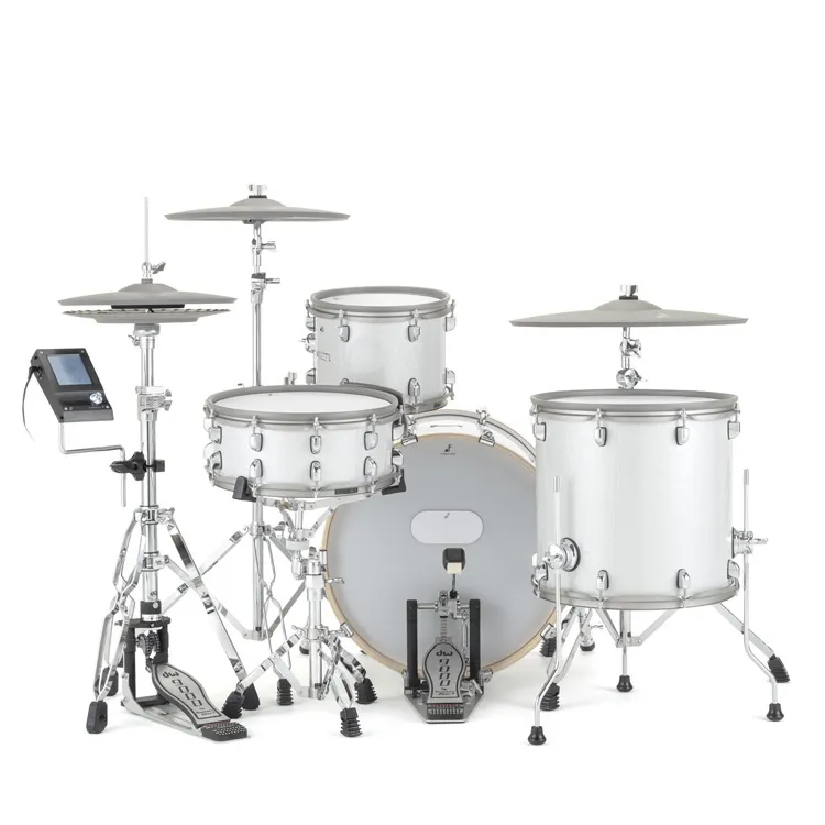 Belles finitions White-Sparkle/Black-Oak sur tous les fûts.