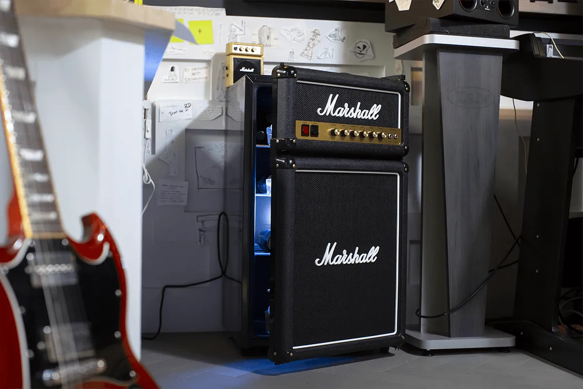 Vous cherchiez un frigo Rock'N'Roll pour votre salon, salle de répétition ou studio d'enregistrement ? Marshall a pensé à vous !