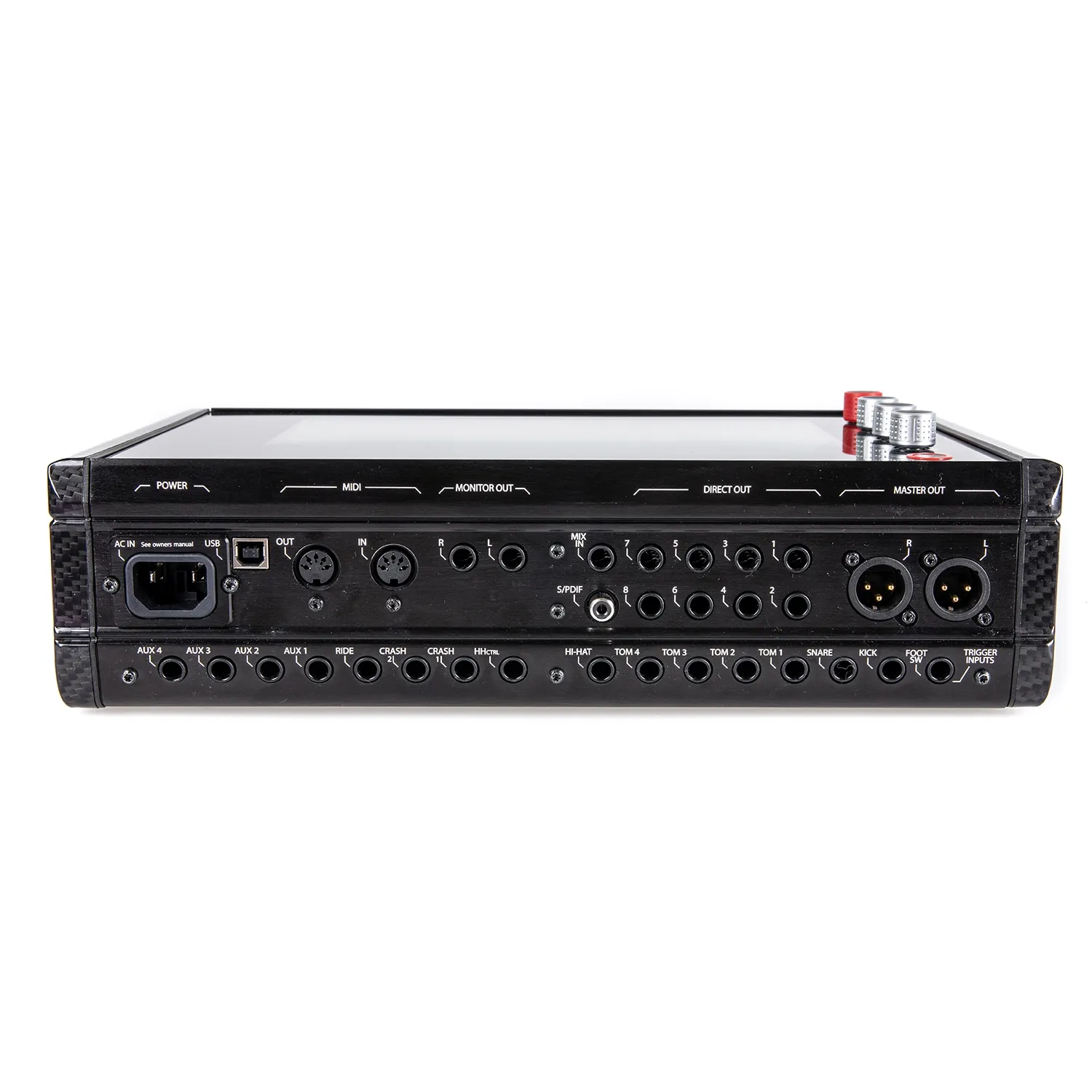 Un véritable concentré de technologie au look futuriste avec sa finition style carbone! Le premier module du marché avec un écran tactile 10’’. Il dispose d’une architecture multi-puces, 3 au total développées par une société française, chacune disposant de sa propre fonction (interface tactile, détection des triggers et génération des sons), le résultat : des temps de réponses ultra rapides !