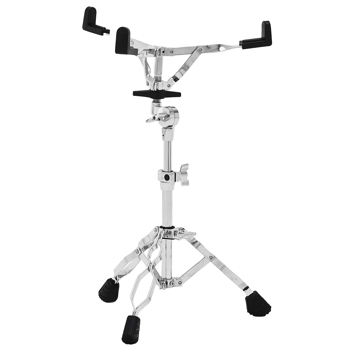 Un pied de caisse claire léger avec des pieds robustes à double embase et un panier inclinable pour un positionnement précis.
