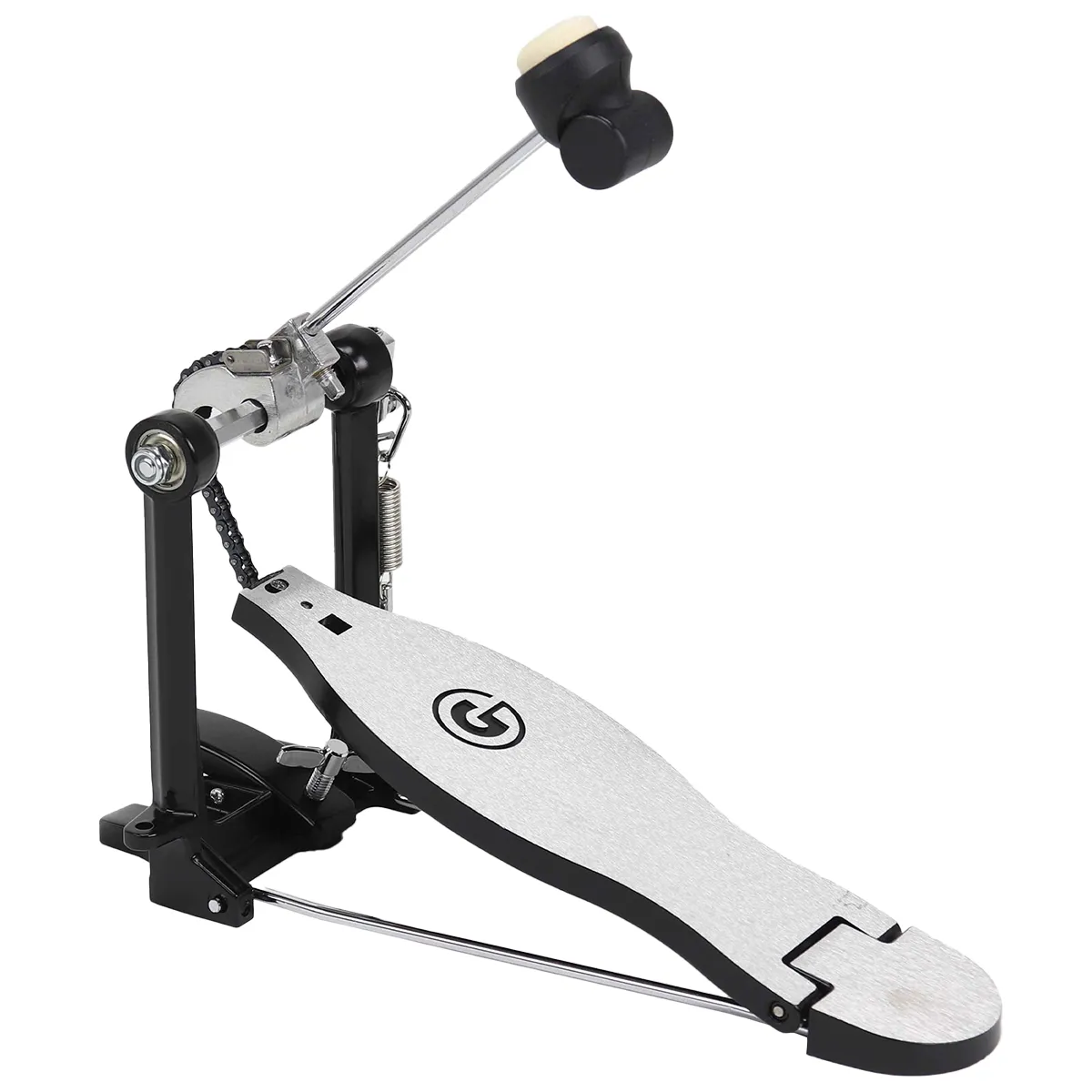 Cette pédale de grosse caisse simple chaîne est une option à la fois légère et robuste pour les joueurs de nombreux styles. Son cadre de pédale entièrement métallique, sa semelle lisse et son talon lui confèrent une sensation de rapidité et une action rapide. Une batte de grosse caisse en feutre est inclus pour un son de grosse caisse classique.