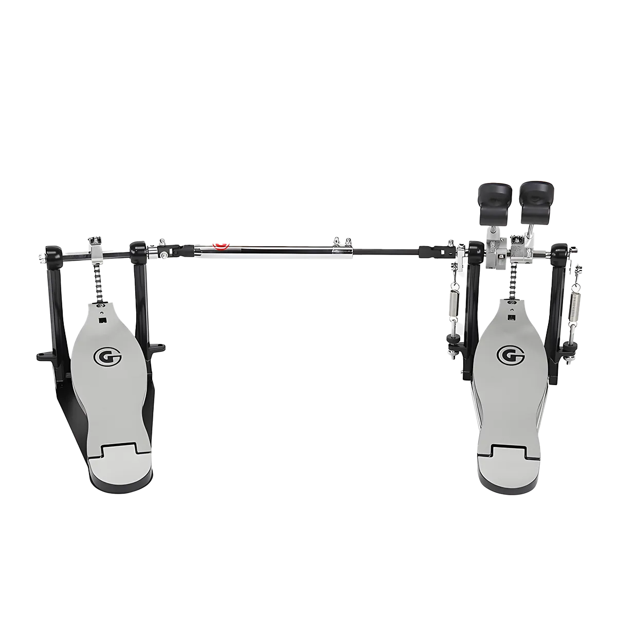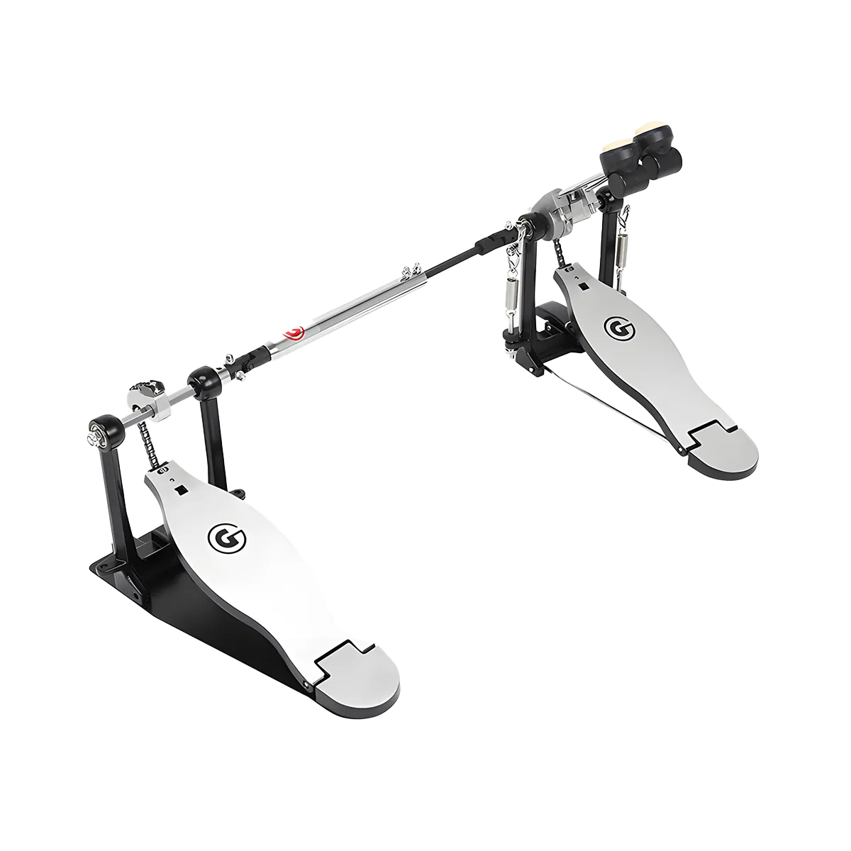Cette double pédale légère à simple chaîne offre une sensation de rapidité et de solidité. Sa semelle et son talon lisses G-Class lui confèrent un aspect élégant et conviennent parfaitement aux joueurs qui aiment faire glisser leurs pieds. Son cadre robuste en métal moulé assure la stabilité et une fixation solide sur le cercle grosse caisse. Le cardan réglable, le réglage de la tension facile d'accès et les deux battes de grosse caisse à double face font de cette pédale un outil de premier choix pour tous les batteurs.