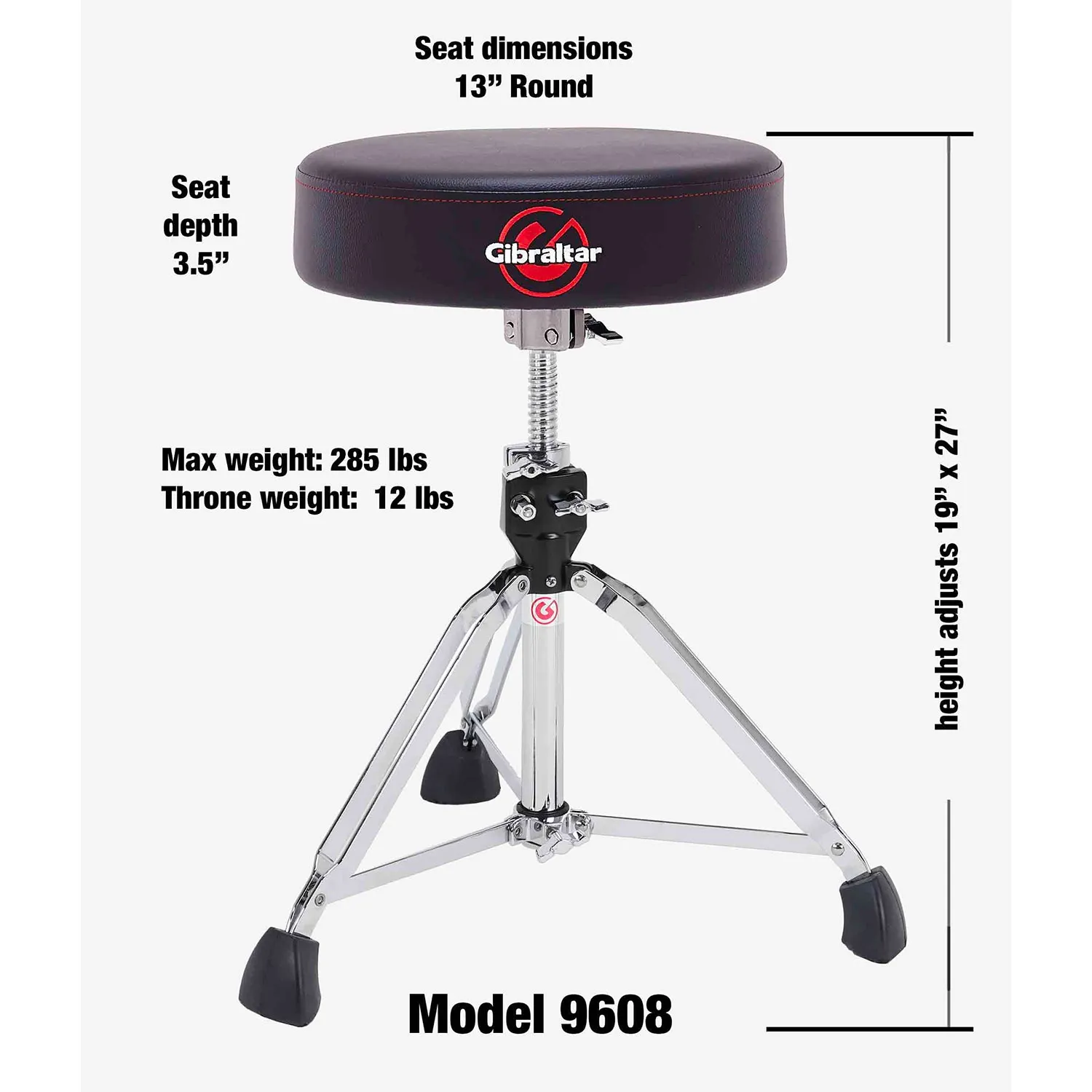 Le Gibraltar 9608 est un siège robuste à double embase conçu pour résister aux traitements les plus rudes tout en offrant un maximum de confort au musicien.