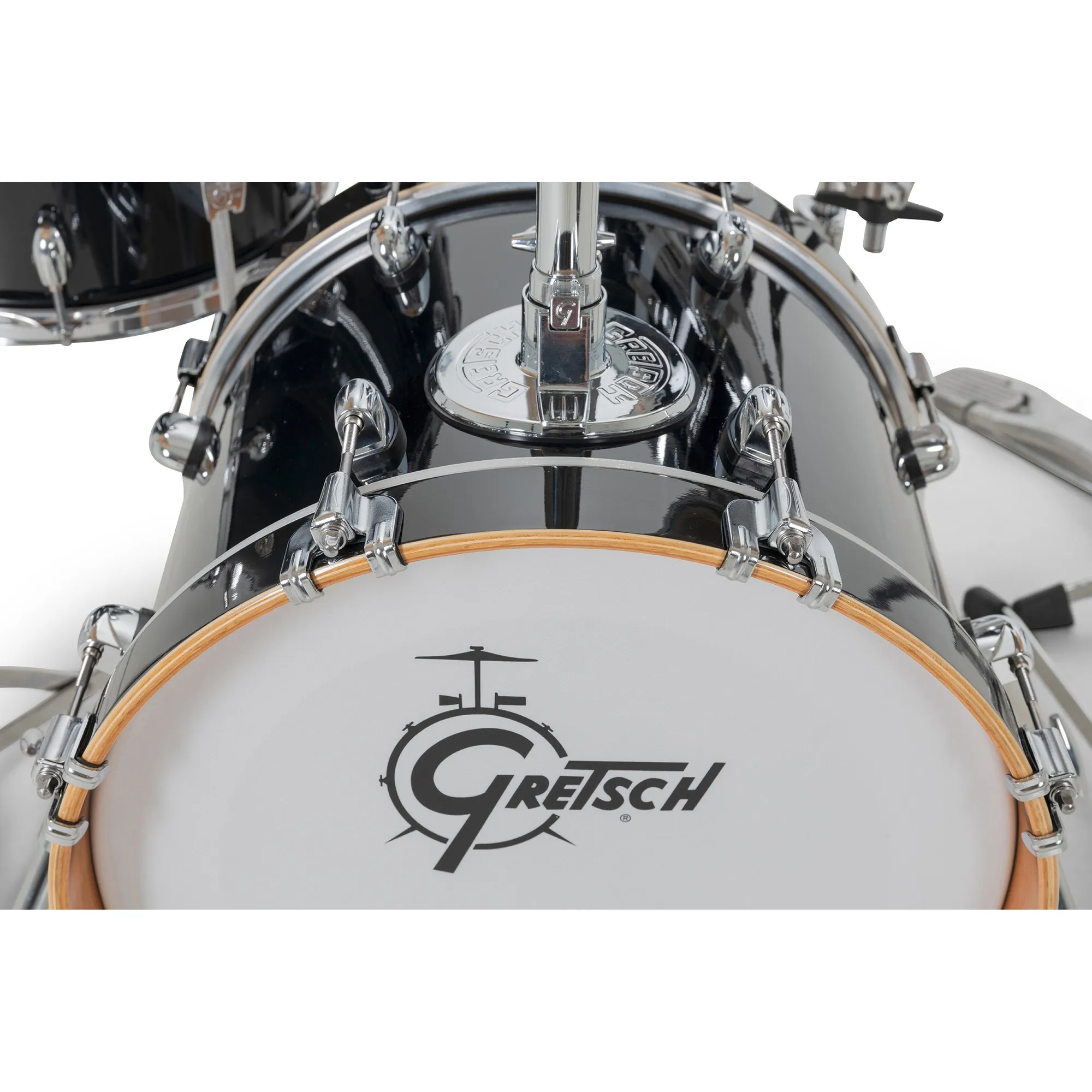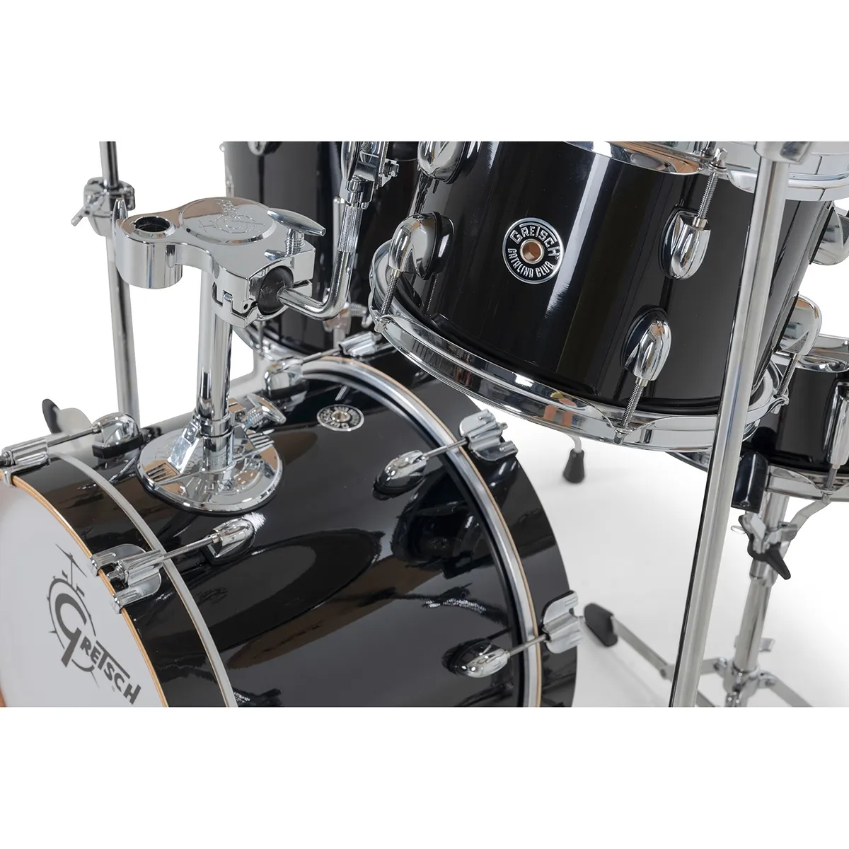 Les fûts de la nouvelle Catalina Club sont en acajou 7-plis avec chanfrein à 30°, et pourvus du nouveau badge rond. Ils sont équipés de mini coquilles Catalina et de cercles emboutis (1,6mm d’épaisseur). Les nouvelles Catalina Club sont équipées d’un nouveau système de suspension de tom plus discret, plus léger et plus facile à utiliser. Il se monte sur la tige en L 9010. Les nouvelles Catalina Club sont dotées de peaux sablées simple pli Gretsch by Remo. Les grosses caisses sont équipées d’un nouveau support de tom type «Round Badge» et d’une bague-mémoire avec logo «G». Inspirées par le modèle 9020, les nouvelles mini coquilles de tom offrent la même fiabilité et sont pourvues d’une vis de serrage en T, discrète et maniable. Support de Toms Le nouveau support de toms permet un réglage de l’inclinaison des toms sur le dessus grâce aux nouvelles vis de serrage en T. Il est également doté d’un espace pour accueillir une perchette cymbale.