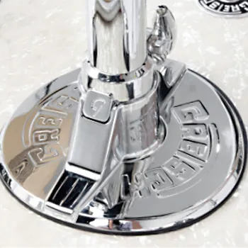 Les grosses caisses sont équipées d’un nouveau support de tom type «Round Badge» et d’une bague-mémoire avec logo «G».