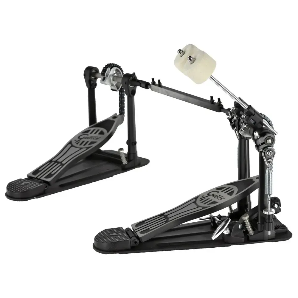 La double pédale de grosse caisse GRG4DB est conçue pour les batteurs qui privilégient la fiabilité et la précision. Elle est dotée d'un entraînement à double chaîne robuste pour une durabilité et un fonctionnement fluide. Améliorée par les semelles Easy Glide GRETSCH et les talonnettes articulées, elle offre une jouabilité sans effort et un confort optimal pendant les longues sessions. Sa conception comprend du caoutchouc antidérapant et des pointes réglables pour une installation stable, ainsi qu'un support pour clé pratique et accessible. Une pince facile à régler avec des patins en caoutchouc de protection garantissant que le cerclage de votre grosse caisse reste intact. La double pédale de grosse caisse Concert Series allie fonctionnalité et style, ce qui en fait un accessoire indispensable pour tout batteur.