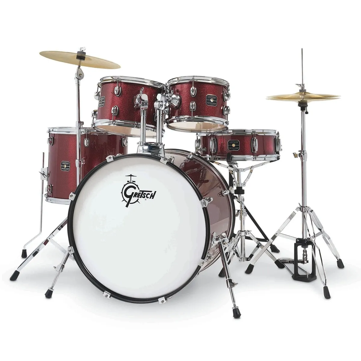 Avec la série Renegade, GRETSCH s’adresse à tous ceux qui sont à la recherche d’un set complet à un prix abordable, pour lancer leur carrière de batteur. Le jeu de fûts est disponible en quatre couleurs différentes. Le hardware complet comprend toutes les pédales et les supports nécessaires, un tabouret, sans oublier un premier jeu de cymbales et des baguettes.