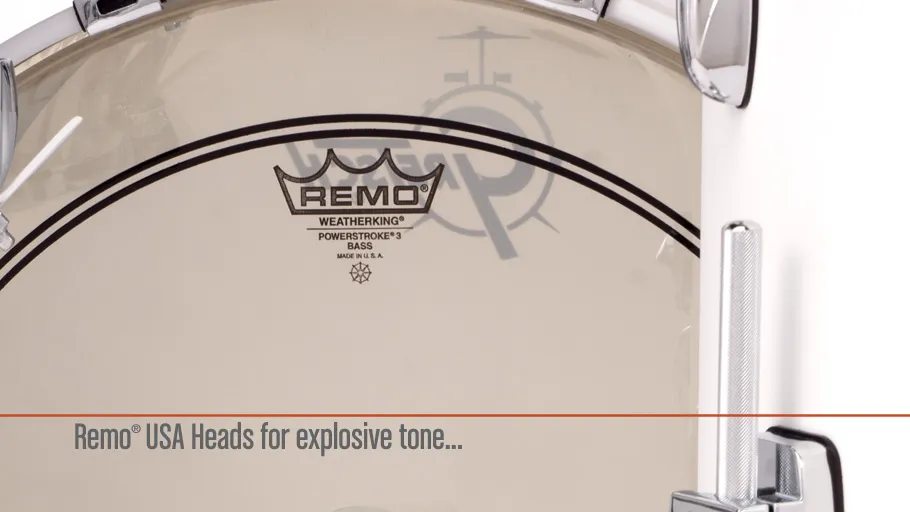 - Bass : USA Clear Powerstroke Batter, Coated white Gretsch head with muffle ring resonant