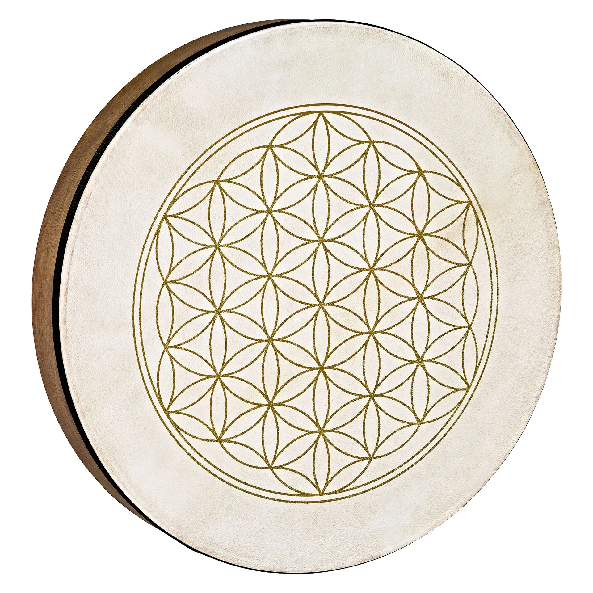 Hand Drum Sonic Energy 16", Flower Of Life, corps en Siam Oak, Peau de chèvre sélectionnée, grip