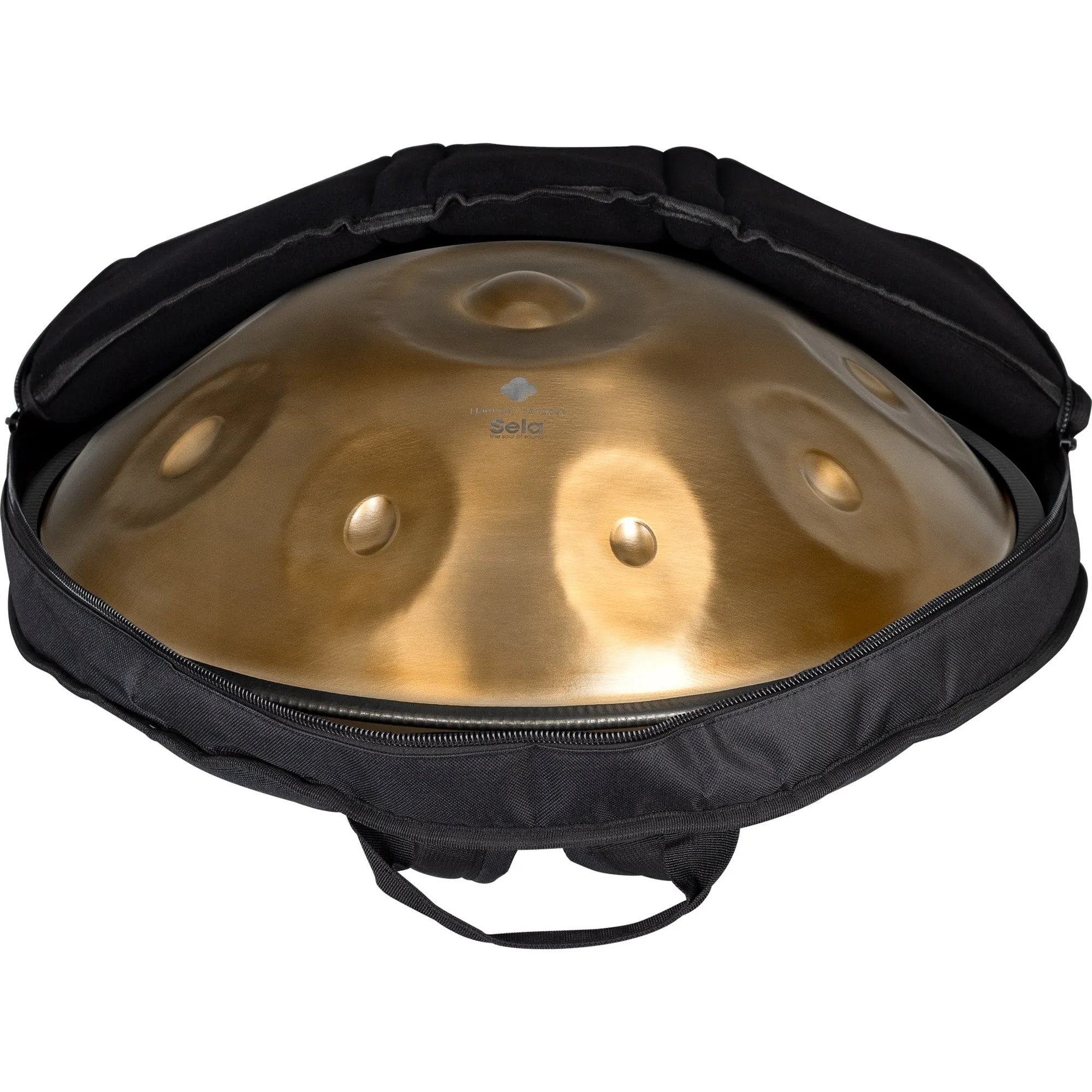 Chaque Handpan Sela est livré avec un sac en nylon ultra résistant qui, grâce à sa bonne doublure, offre une protection optimale pendant le transport. Il peut être porté à la main grâce aux deux poignées ou confortablement comme un sac à dos grâce aux bretelles réglables. Un compartiment extérieur pratique offre suffisamment d'espace pour les petits accessoires tels qu'un métronome.