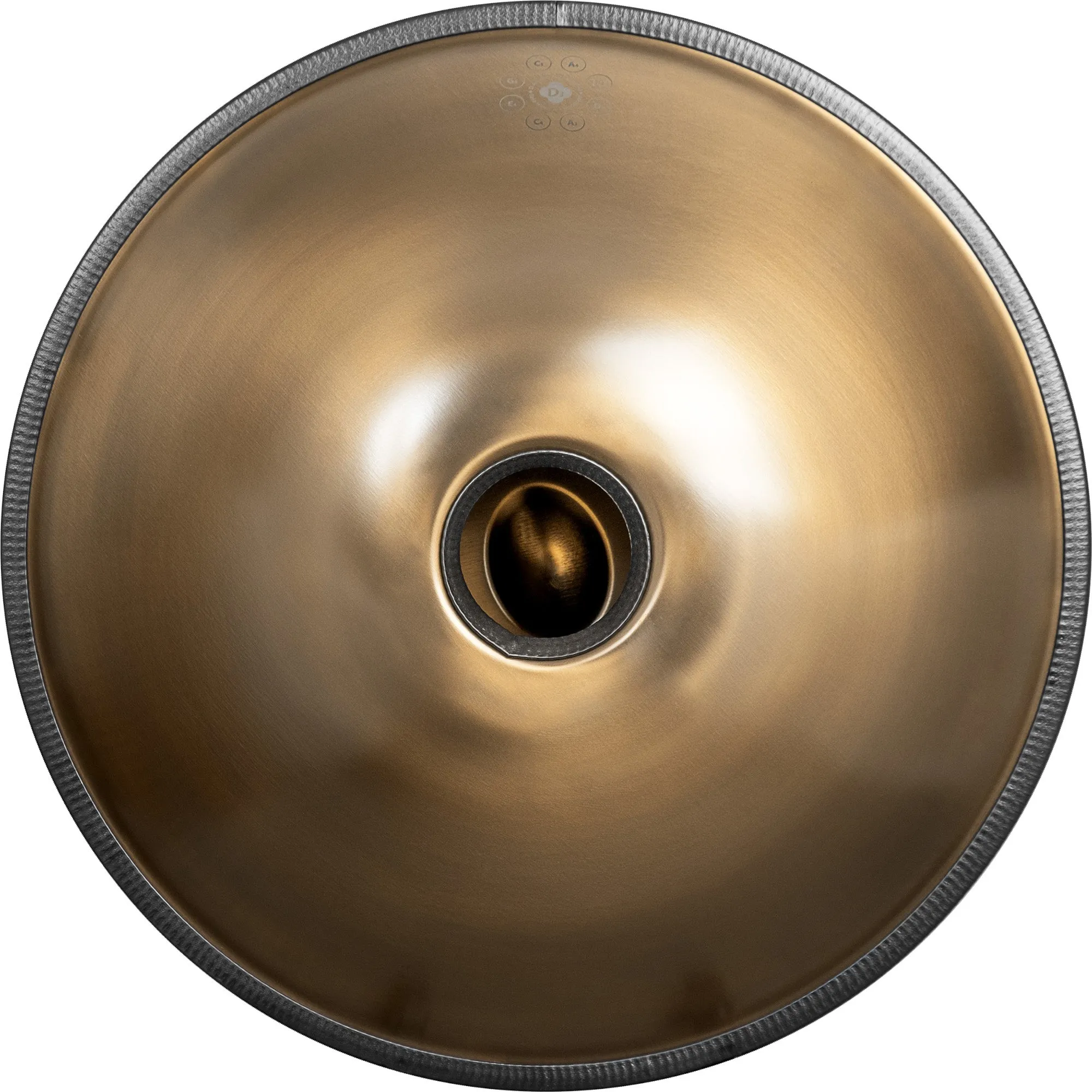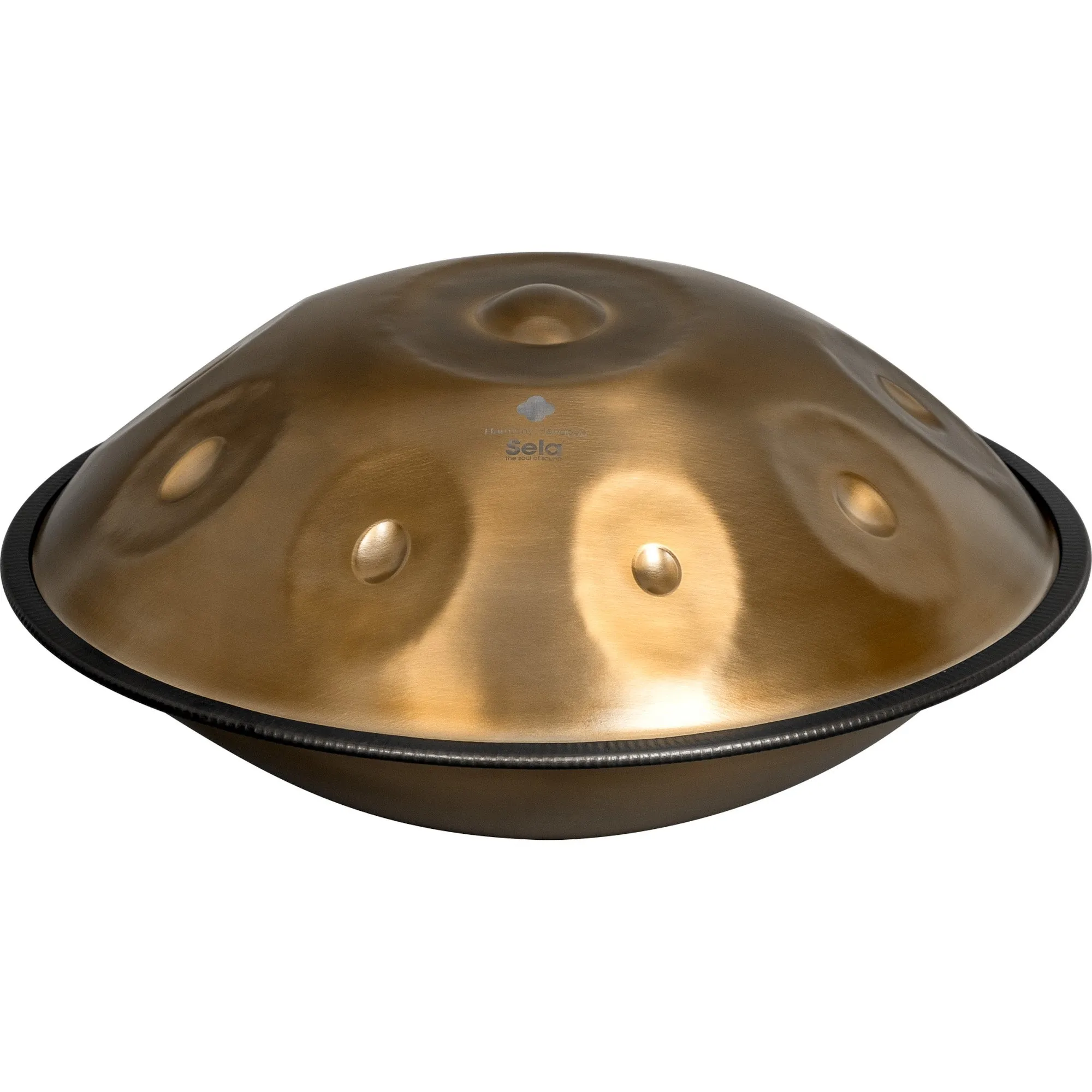 Les Handpans Sela Harmony sont entièrement fabriquées à la main, parfaitement accordées et faites d'un alliage d'acier inoxydable. Avec un sustain (déclin) beaucoup plus long que les modèles en acier nitruré, ces handpans sont donc particulièrement adaptées au jeu lent, relaxant et méditatif. En même temps, ils sont très faciles à nettoyer et conviennent parfaitement aux débutants, car leur réponse rapide et sensible nécessite moins d'efforts pour jouer. Leur finition dorée mate leur confère un aspect noble et de grande qualité. Sela propose le plus grand choix de gammes différentes dans cette catégorie.