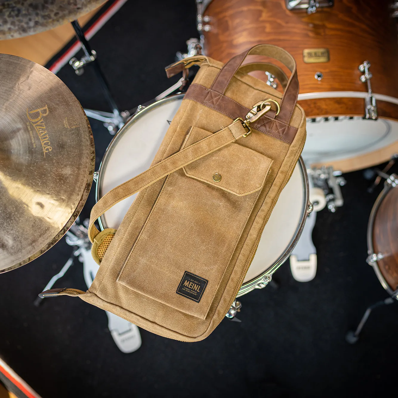 La housse pour baguettes Meinl Waxed Canvas Collection possède toutes les caractéristiques d'une housse de tournée, avec un look classique.